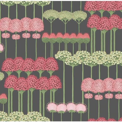 Marimekkos glada grafiska Kippis tapet är designad av Maija Louekari. Som grund för Louekaris tapet finns kristallglas med härliga mönster från porslinsmuggar, ur vilka man också kan servera festligare drycker.