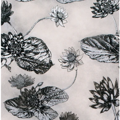 Papperstapeten Lilja med stora blommor är en klassisk tapet från 1950- och 1960-talet. En fin tapet i klassiska hem.