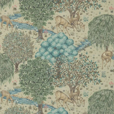 Designers Guilds paneltapet Madhya är tätt mönstrad med löv, blommor och träd. Den släta non woven-tapetpanelen är 1,4 meter bred och 3 meter hög. Varje rulle innehåller 2 våder på 70 cm x 3 m. Tapeten kan upprepas i sidled och justeras enligt takhöjd.