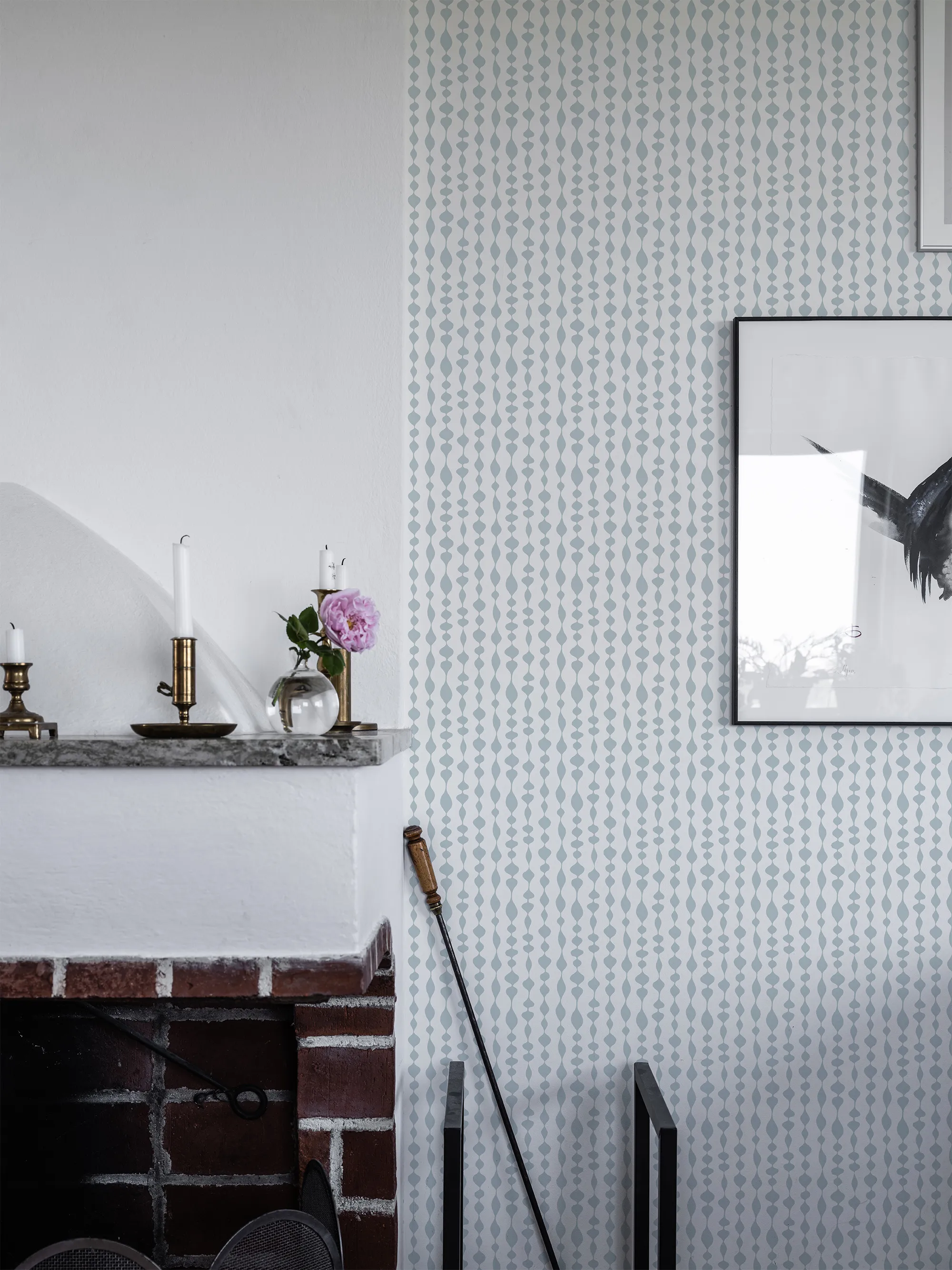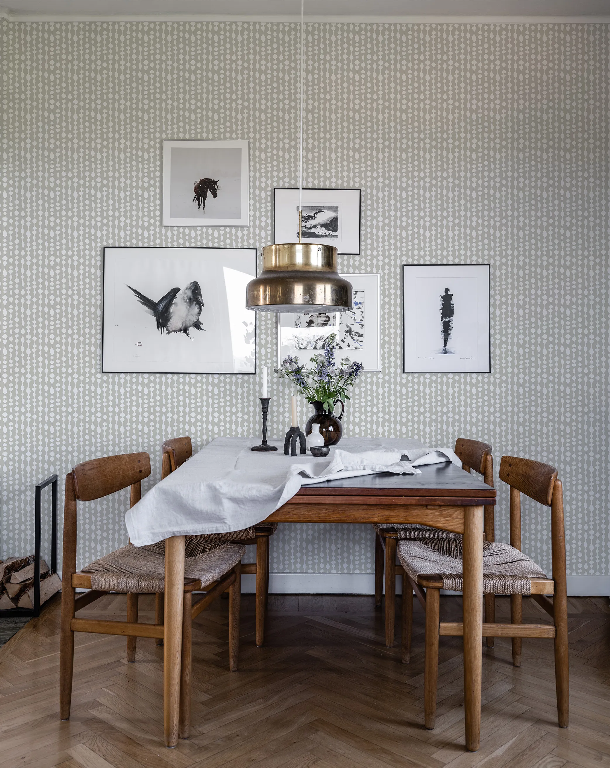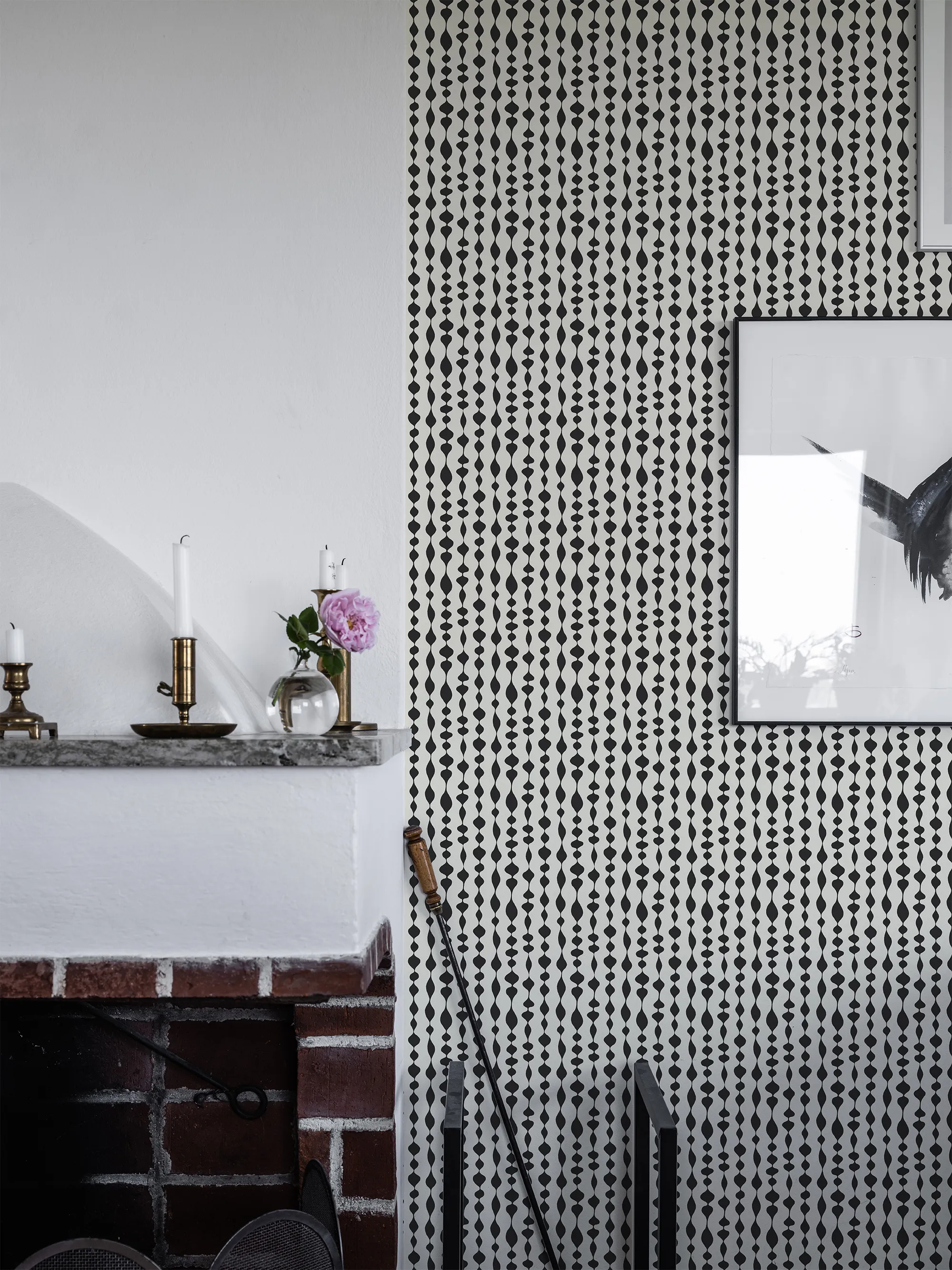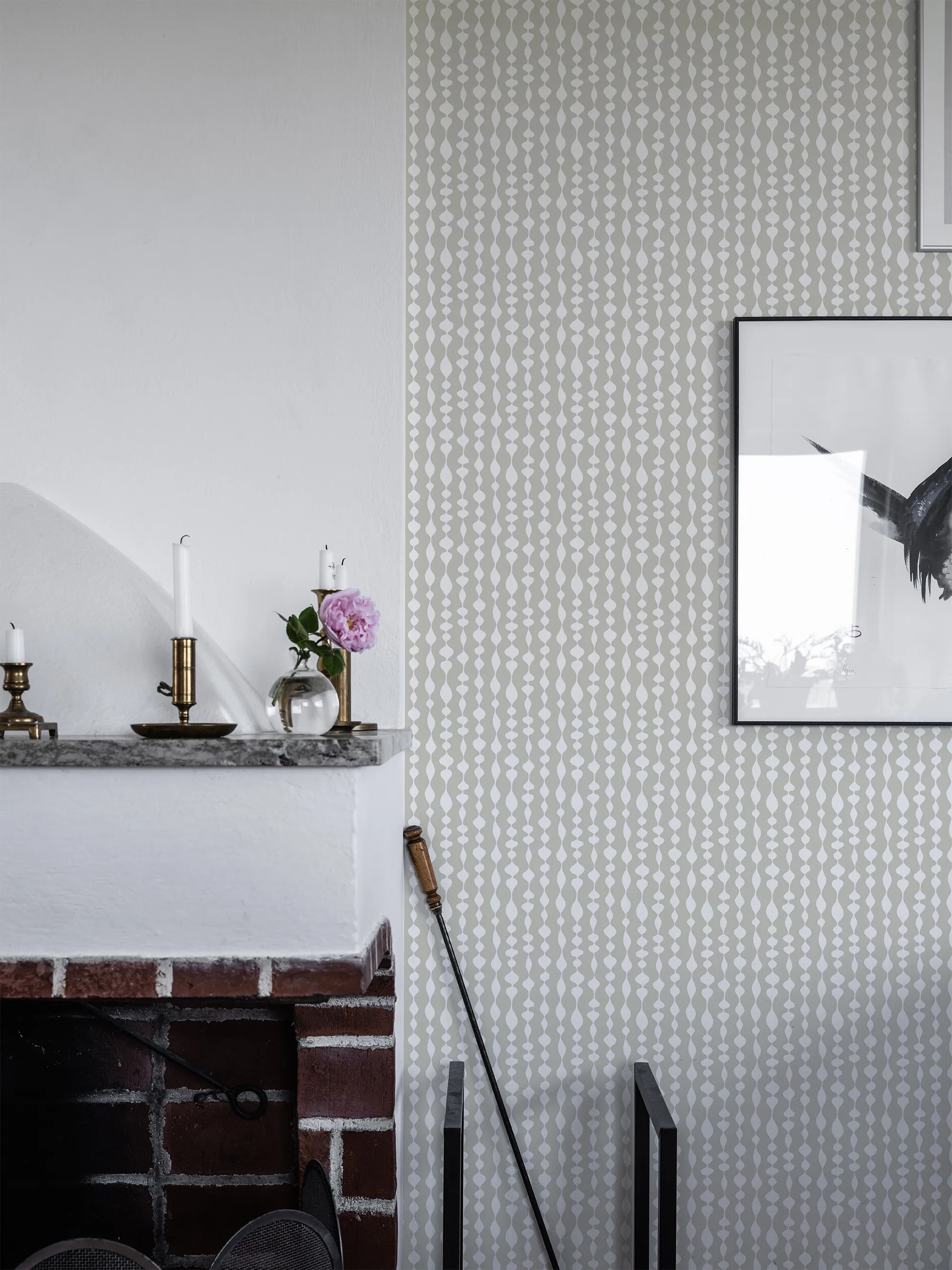 Duros randiga och geometriska tapet Margaret Rose har ett oregelbundet mönster i retrostil. Tapeten är uppkallad efter den engelska prinsessan Margaret och formgiven av Olle Eksell. Non woven-tapeten passar bra i hem med inredning i retrostil.