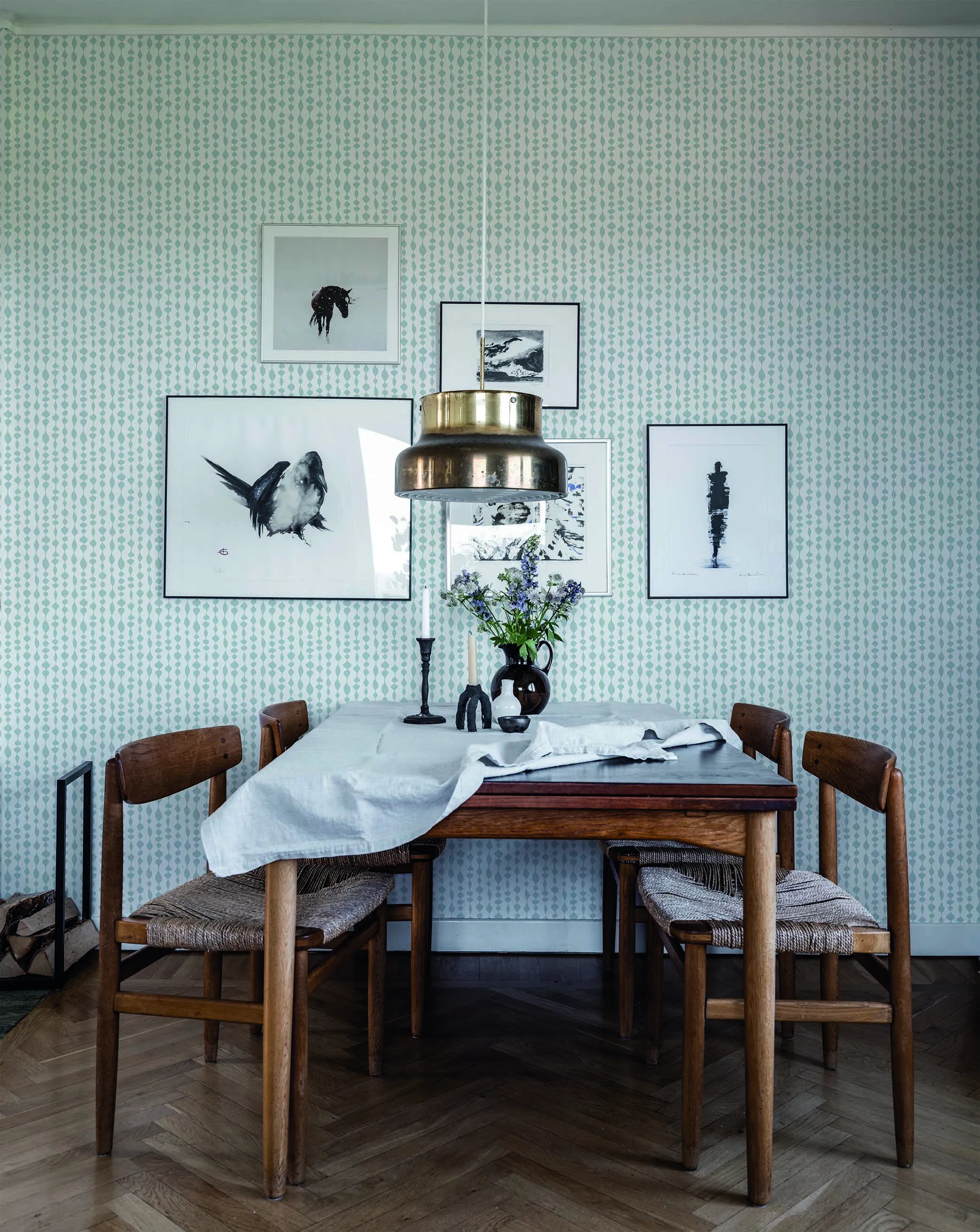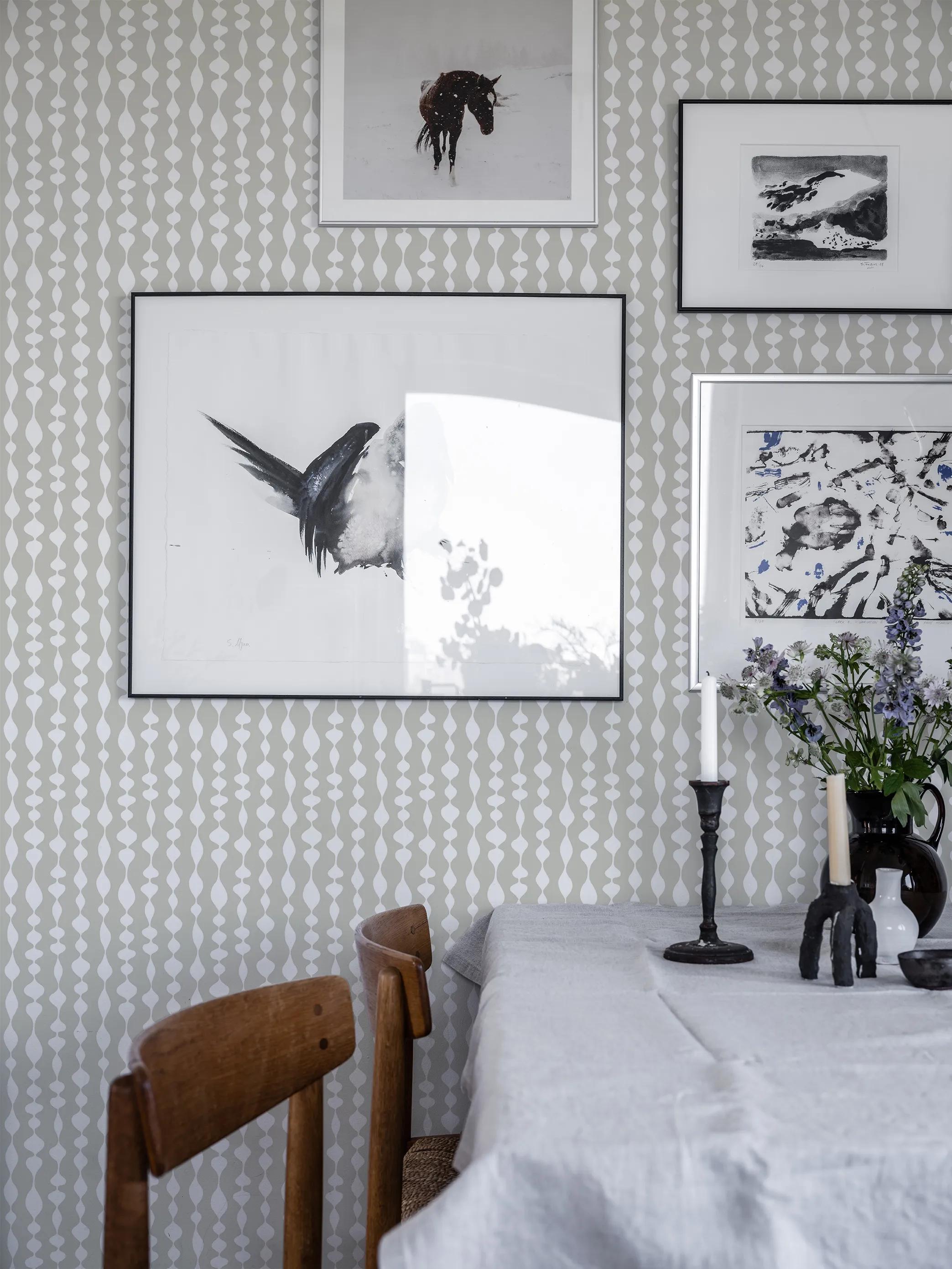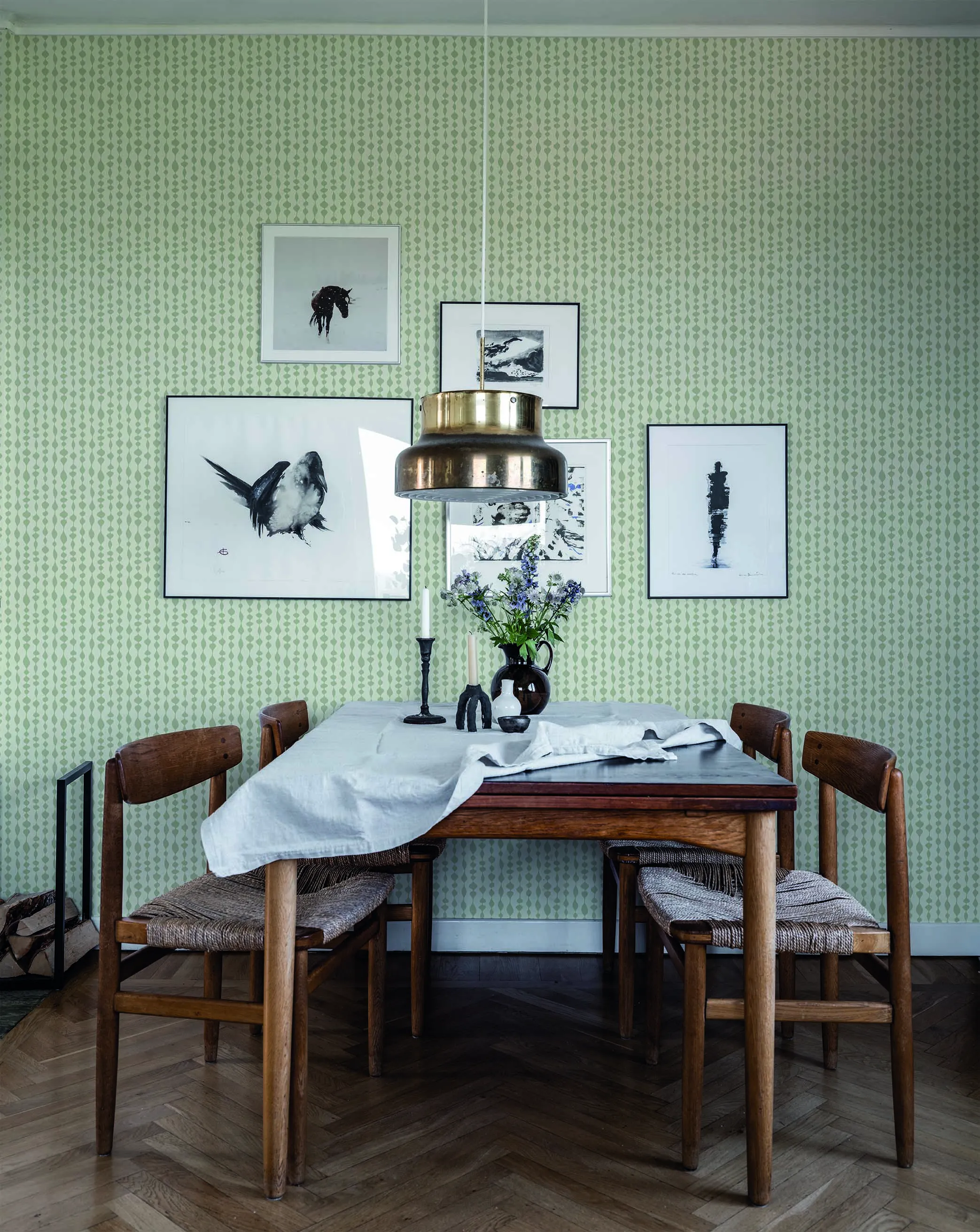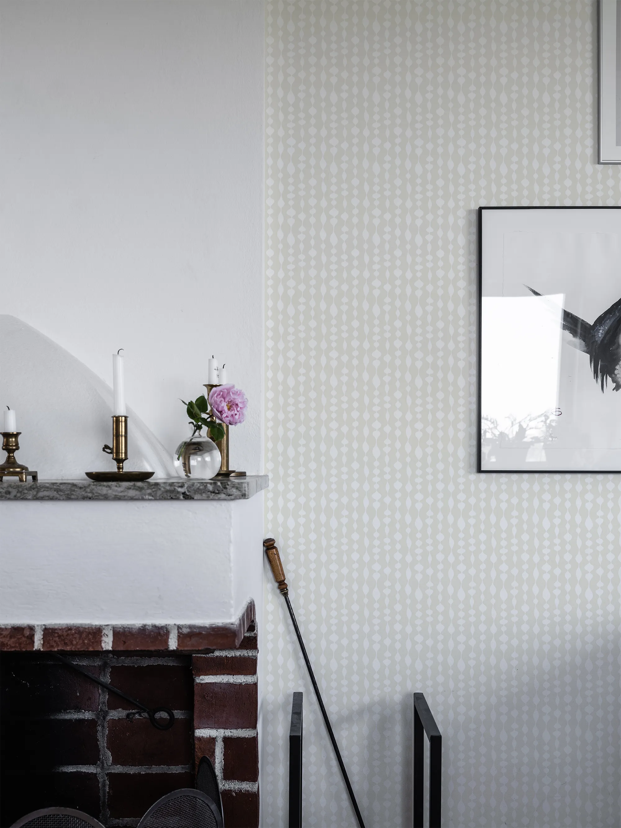 Duros randiga och geometriska tapet Margaret Rose har ett oregelbundet mönster i retrostil. Tapeten är uppkallad efter den engelska prinsessan Margaret och formgiven av Olle Eksell. Non woven-tapeten passar bra i hem med inredning i retrostil.