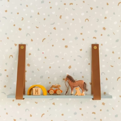 Tapeten Mini Me Confetti med ett oregelbundet mönster av konfetti är en glad tapet till barnrummet.