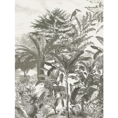 Muraltapeten Mirage är som en hägring med en fantasistad som skymtar bakom lummiga träd. En stilsäker tapet till hall, vardagsrum eller hemmakontor.