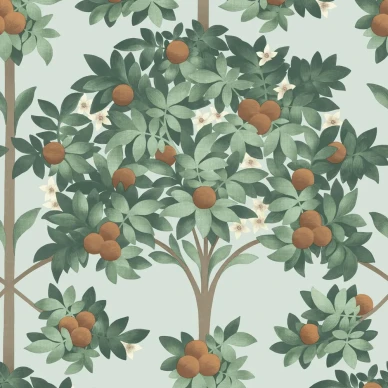 Trädtapeten No Time to Waste har en rolig twist i form av fickur som visar olika tider bland de täta eklöven. Den roliga tapeten passar till exempel i kök, vardagsrum eller sovrum.