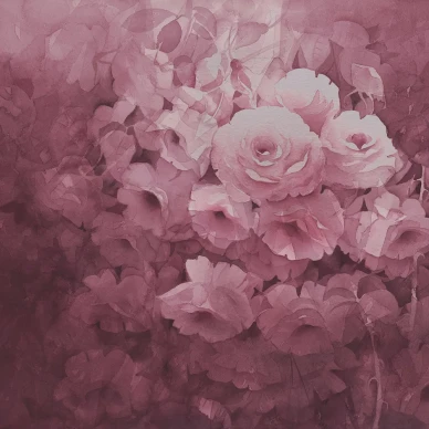 Fototapeten Pandora Drama med stora rosa blommor är som ett vackert konstverk. Den romantiska och dramatiska tapeten passar bra i sovrummet eller ungdomsrummet.