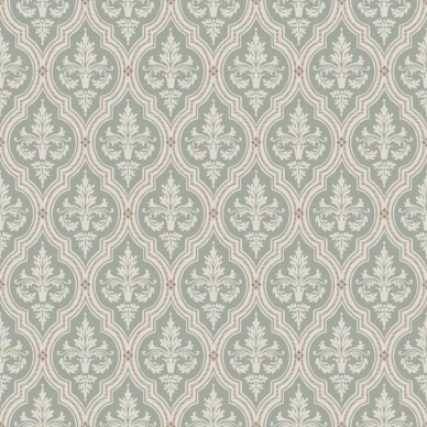 Tapeten Pigkammaren med stilfullt ornamentmönster passar, namnet till trots, också bra i vardagsrummet. Tre färgalternativ.