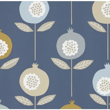 Sandbergs tapet Rio med snäckor på enfärgad botten är grafisk och lekfull. Tapeten passar på rummets alla väggar eller som fondtapet.