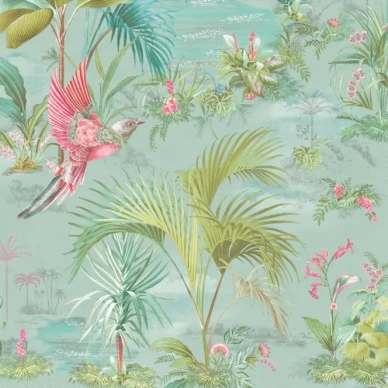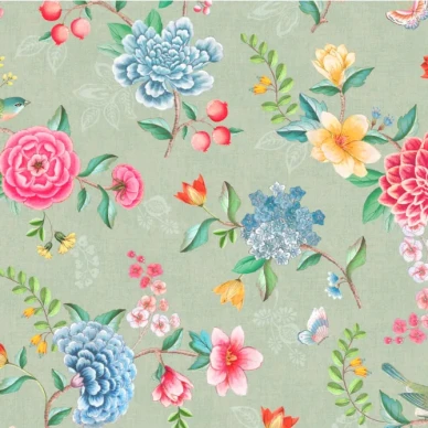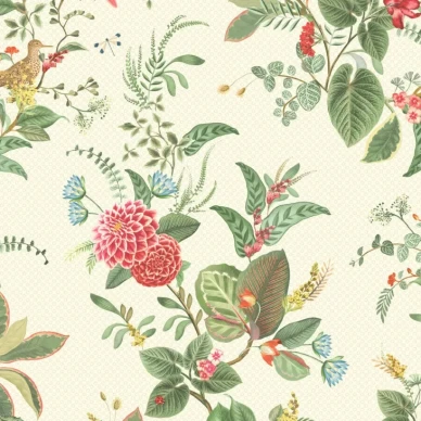 Rebel Walls blommiga tapet Strawberry Lane är somrig med mogna smultron bland blommor och blad. En fin barnrumstapet, men minst lika vacker som vardagsrumstapet eller kökstapet.