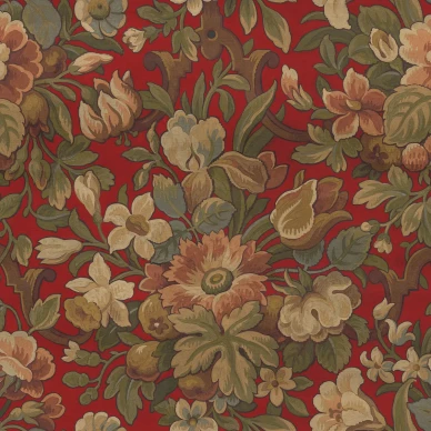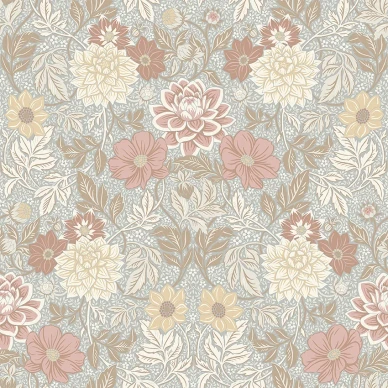 Sandbergs blommiga bladtapet Valentin har ett tätt mönster. Mönstret baserar sig på ett franskt original från 1870-talet. En fin tapet med tredimensionell design, som passar i hall, kök och vardagsrum.