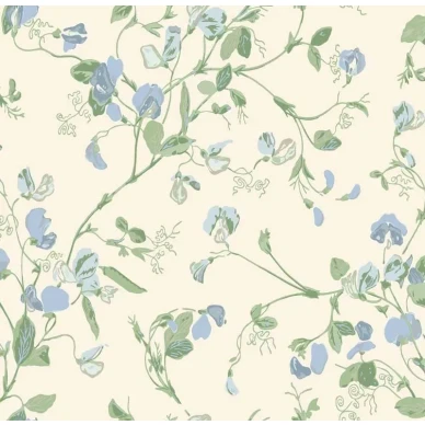 Vera-blommigt tapet är en tidsresa till det förflutna och samtidigt ett steg mot en elegant och tidlös inredning. Den charmiga kombinationen av blomsterkransar och bladskott skapar en öppen och luftig atmosfär på tapeten. Detta mönster var mycket populärt på 1920-talet och representerar den typiska art deco-stilen, som senare skulle kallas Swedish Grace.