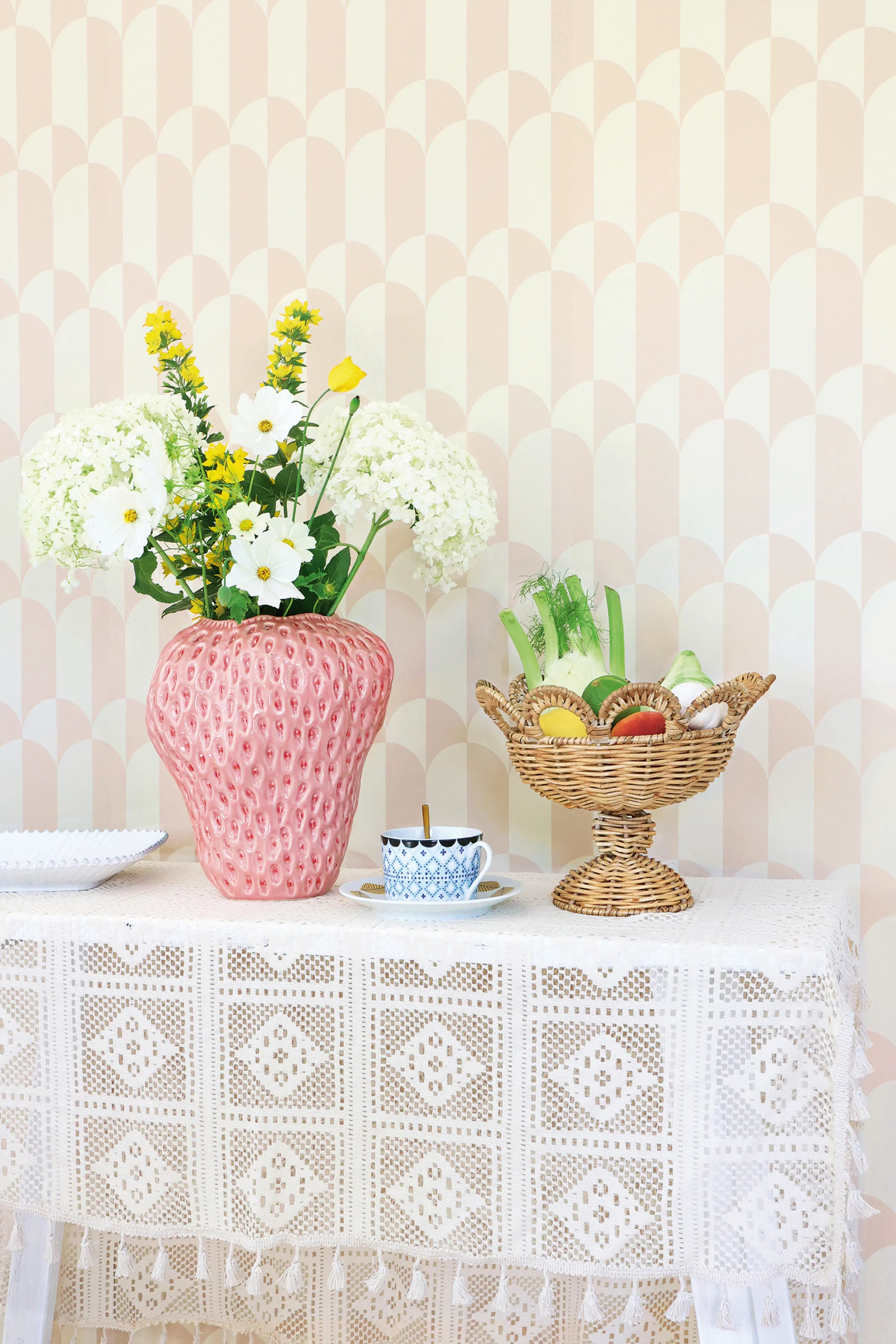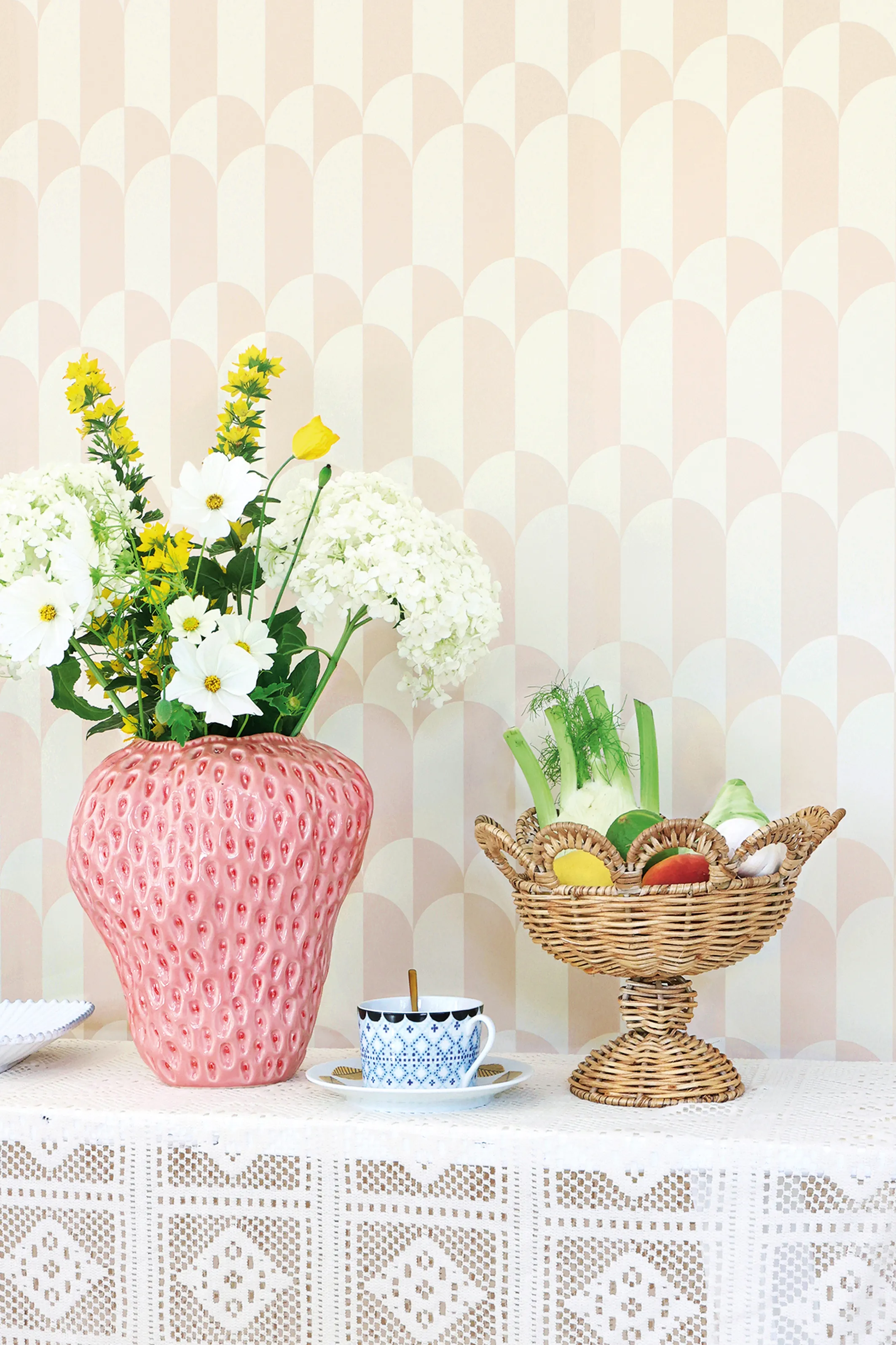 Whipped Cream-tapeten från Majvillan sprider lugn och balans i hemmet. Det mjuka, böljande mönstret skapar en harmonisk rytm som känns både modern och tidlös. De grafiska formerna ger en lätt och luftig känsla – som om ljuset dansar över väggen.