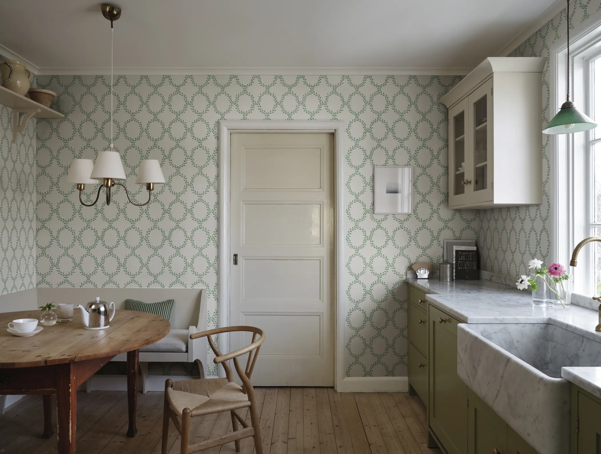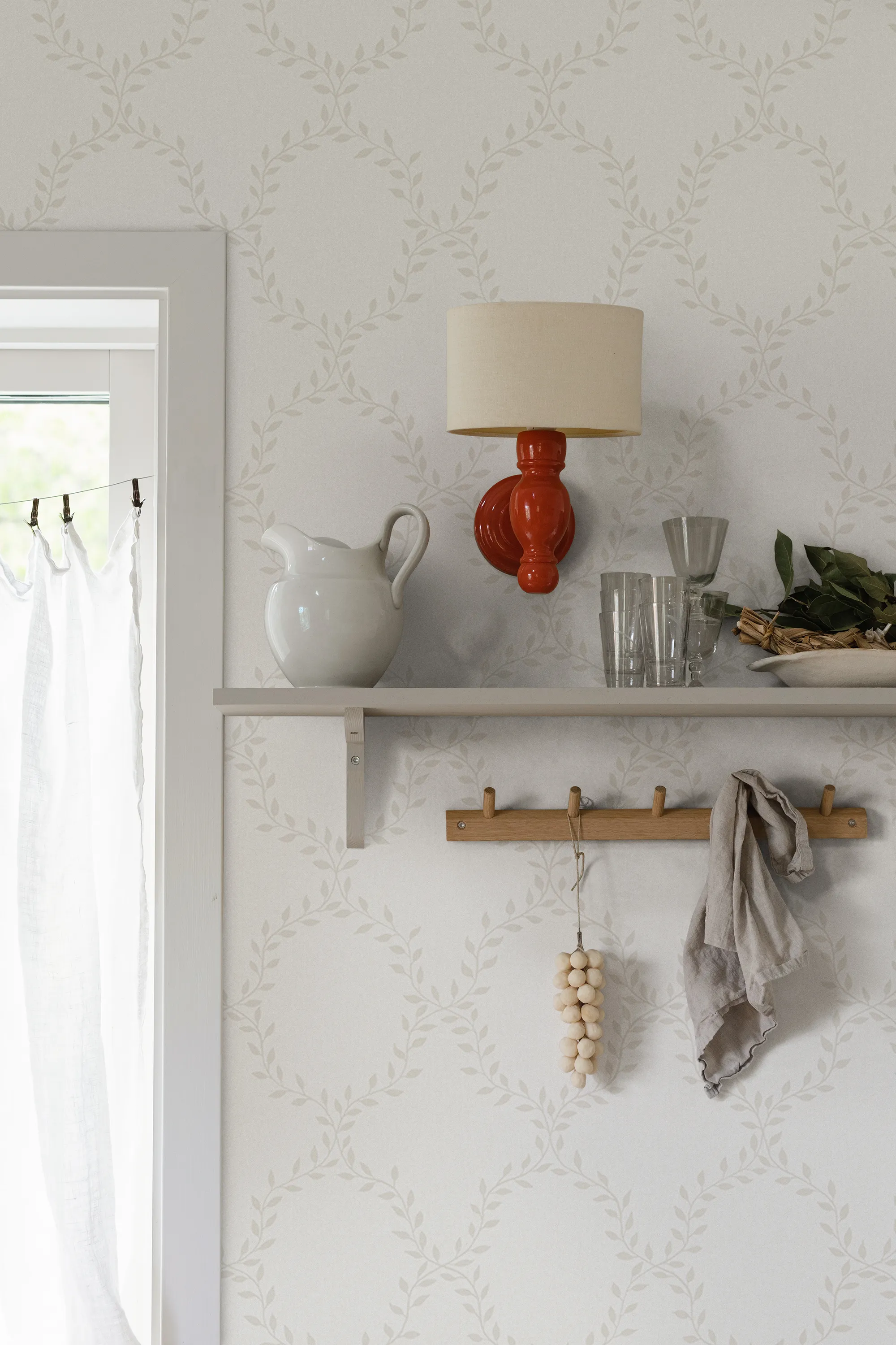 Sandbergs tapet Wilma är en mjuk mönstrad tapet med fint bladmönster. Denna vackra non woven-tapet passar lika bra till köket, hallen som vardagsrummet - bara fantasin som sätter gränser!