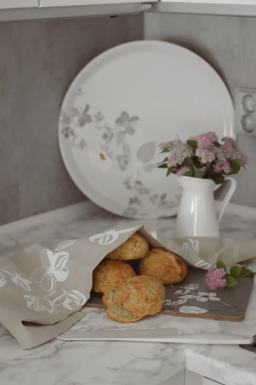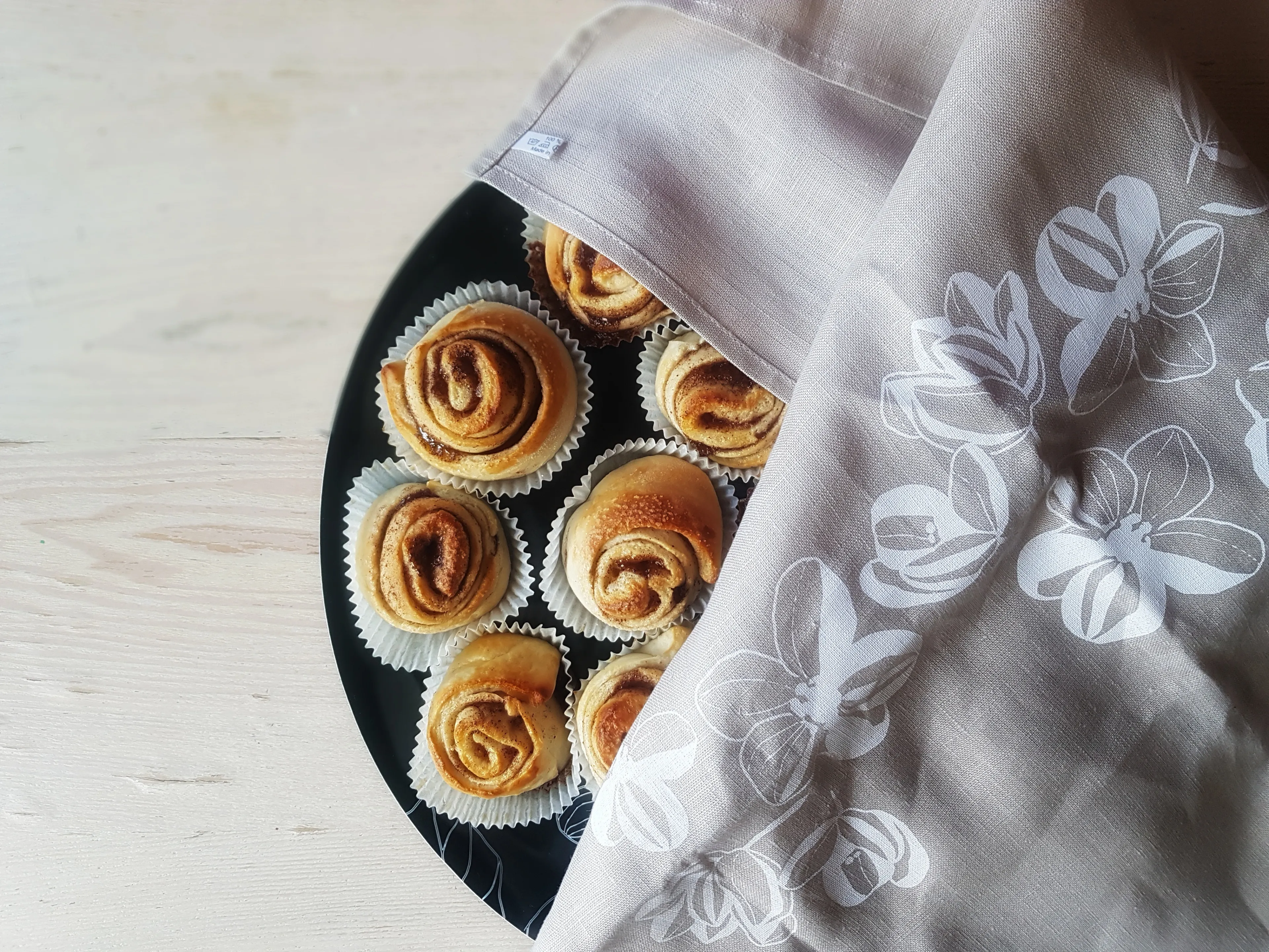 Naturfärgade kökshandduken Äppelblom i linne matchar Johannabrickan med dess äppelblommor. Handduken passar alla säsonger, såväl jul som sommar, och har en harmonisk konstellation av äppelblommor med inspiration från övriga Österbottenbrickor.