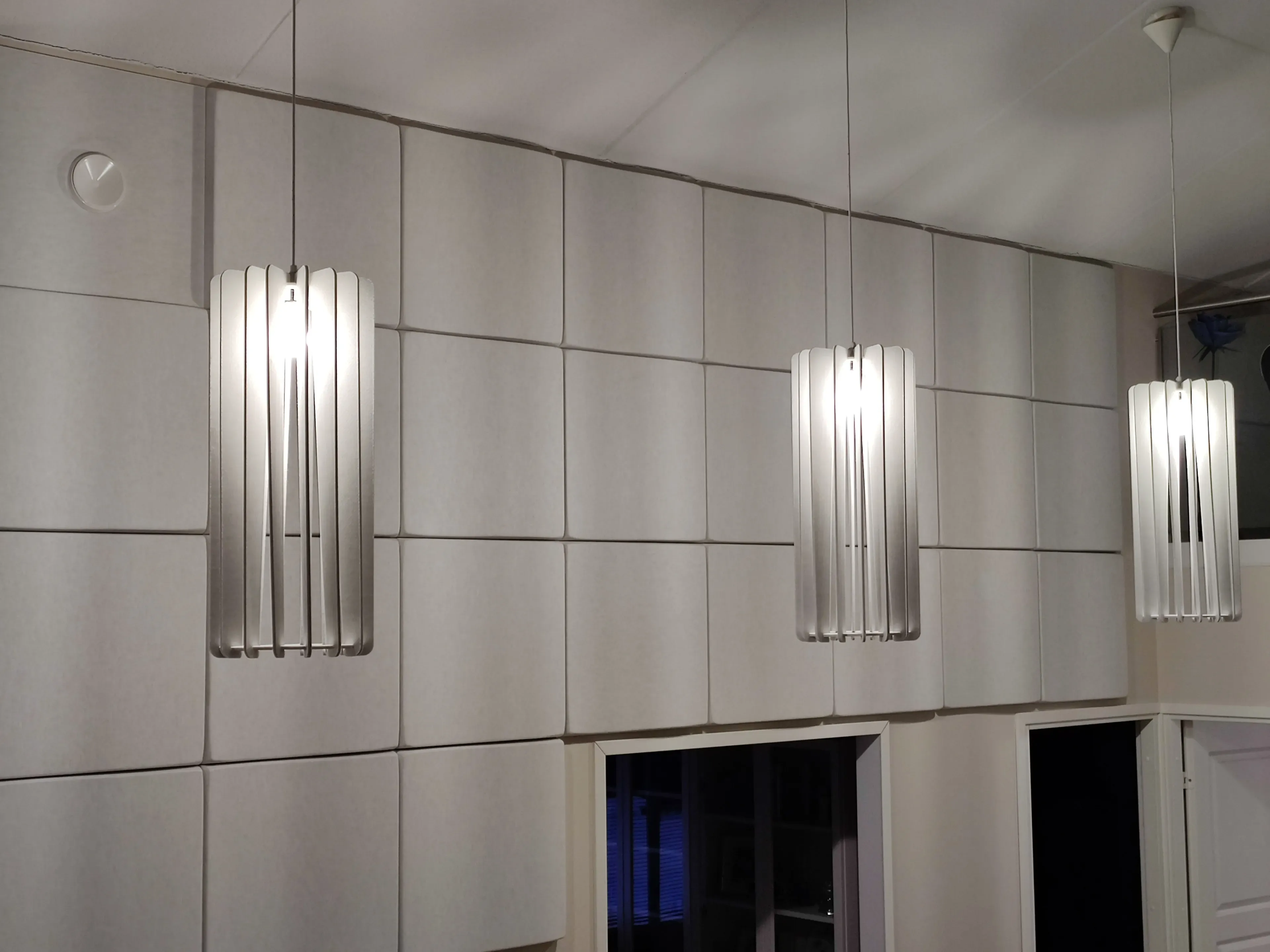 Akustinen kattovalaisin Kokoa 30-70 on valmistettu 100% polyesterkankaasta (PET), jonka valmistukseen on käytetty 95% kierrätettyä materiaalia. Kokoa-valaisin vaimentaa ääniä kankaan ansiosta. Valaisimen ryhdikäs ulkomuoto ja sopiikin hyvin moniin eri tiloihin. Valaisinta on saatavilla neljässä eri värissä, mutta myös johdon ja kattokuvun värin voit valita.