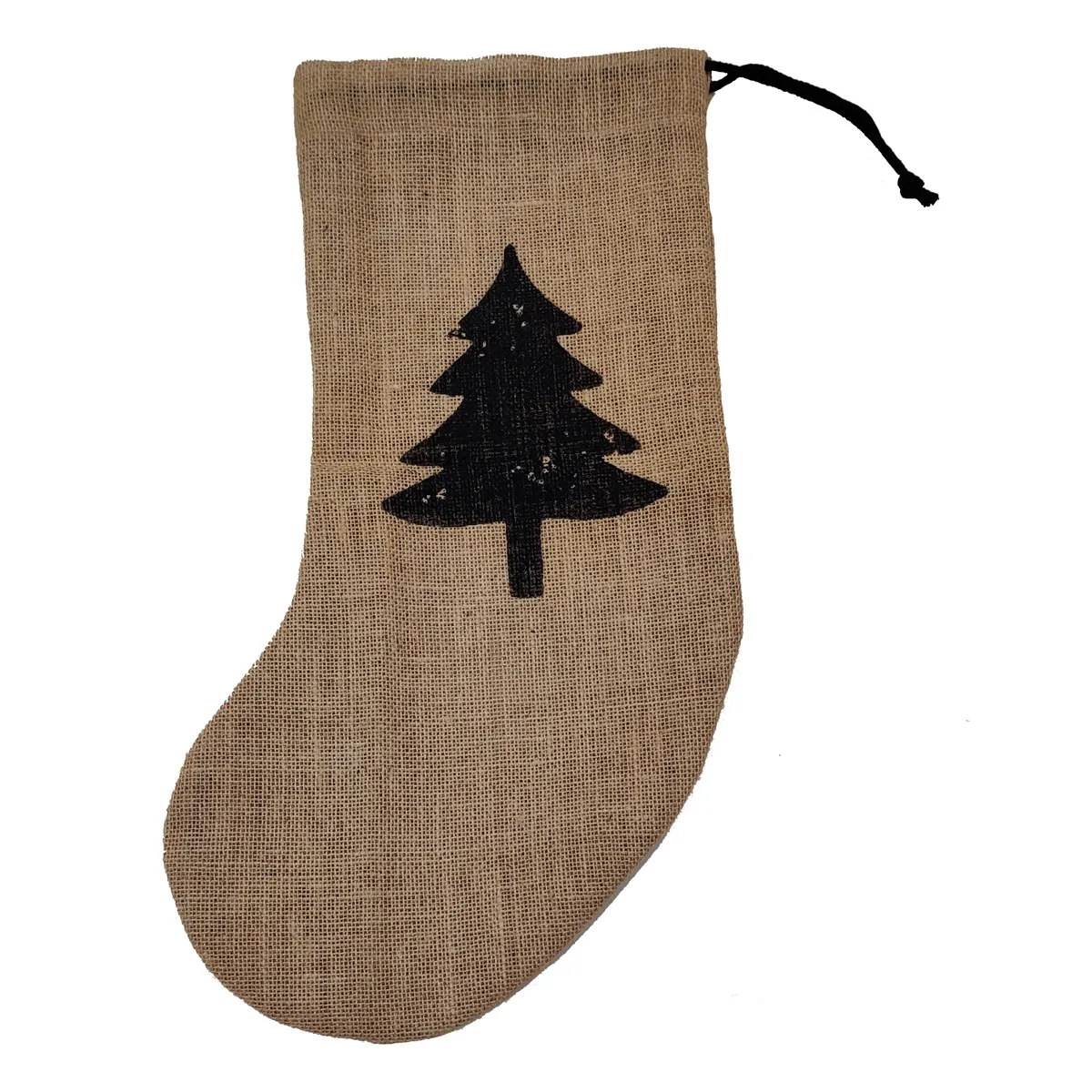 Joulusukka Christmas Stocking Nature By Bensonilta on suloinen ja tyylikäs painetulla joulukuusella. Juuttisukalla on puuvillanauha ripustamiseen ja jotta sitä voida sitoa kiinni tarvittaessa.