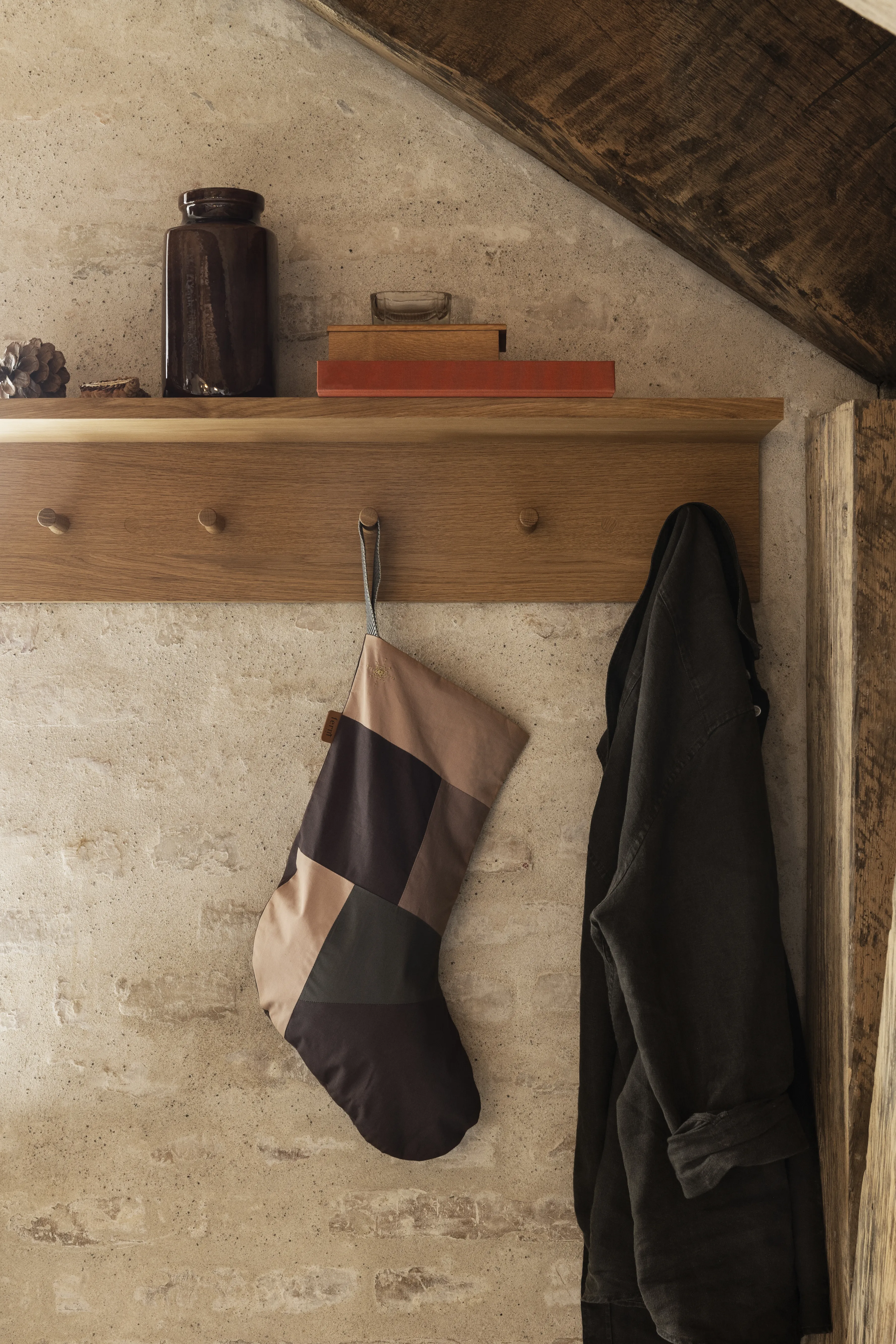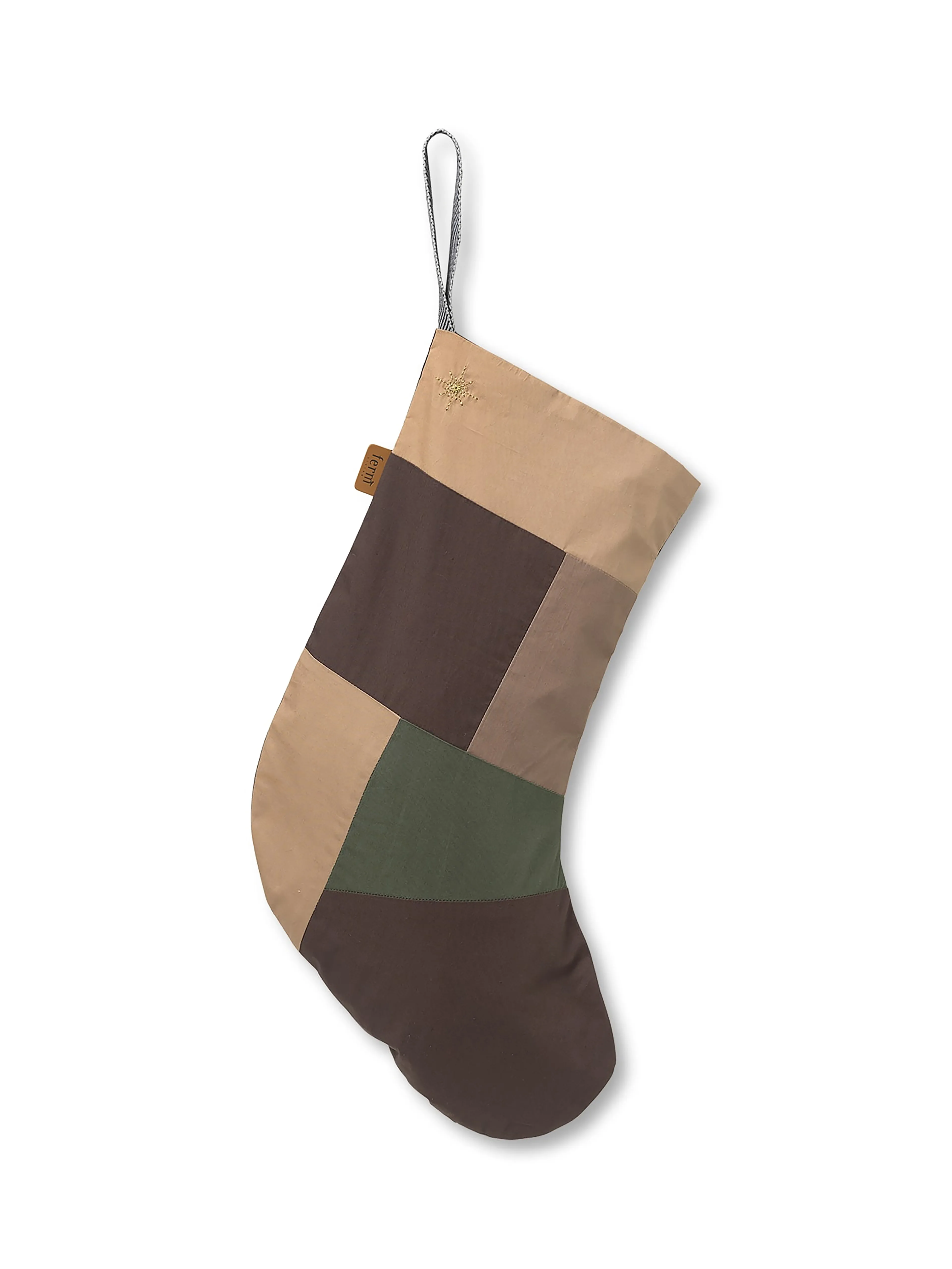 Patchwork Christmas Stocking on moderni joulusukka, jossa on tyylikkäästi beigen ja ruskean värejä päällekkäin. Kaunis joulusukka moderneihin koteihin, täydellinen pienille lahjoille jouluaattona, joka antaa hyvän alun joulujuhlaan.