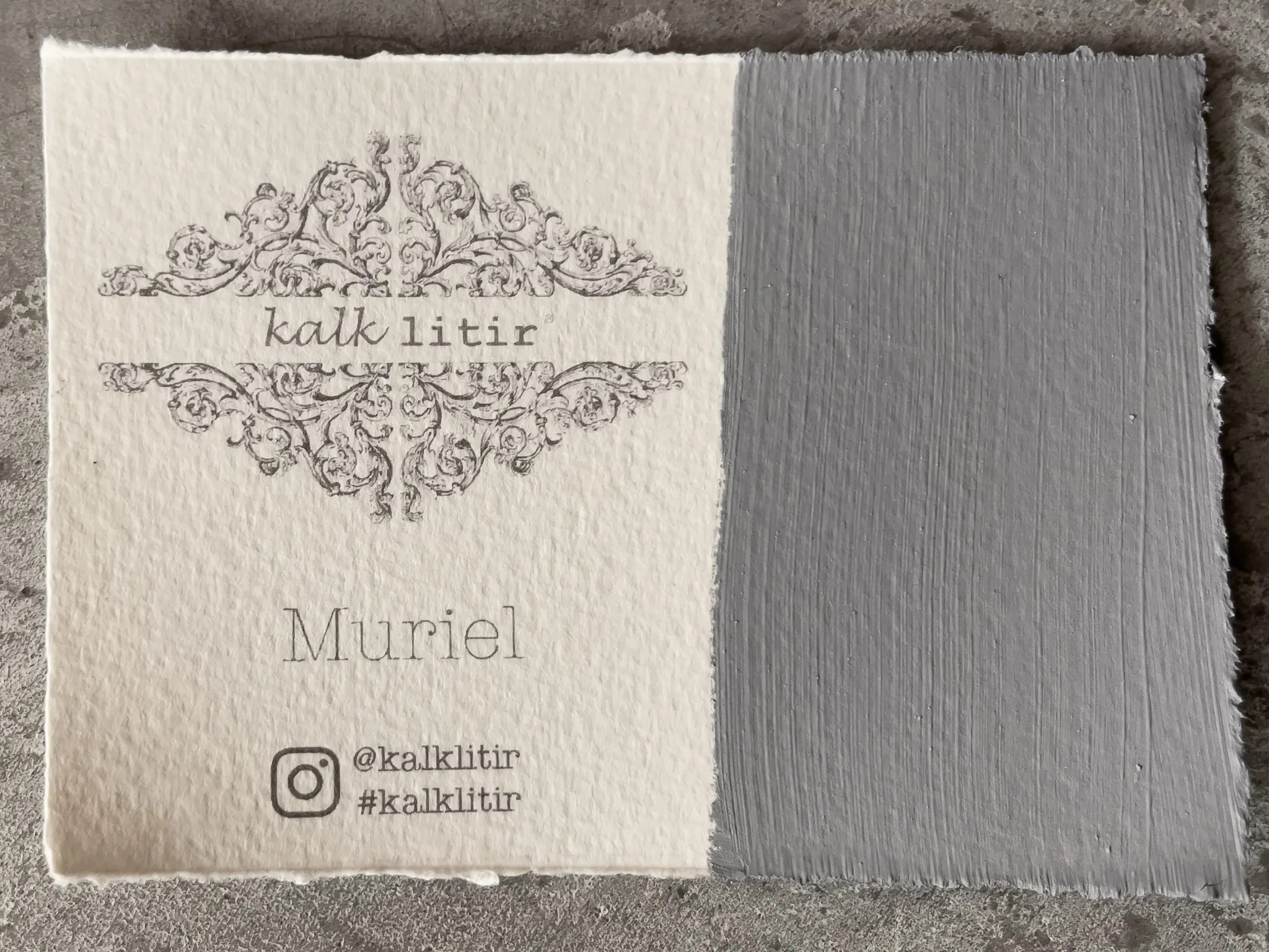 Kalkkimaali Kalklitir on ekologinen ja myrkytön maali Islannista. Maalaminen on helppoa ja lopputulokseksi tulee eläväinen pehmeä kalkkimaali seinä. Maalissa on luonnollisia mineraaleja ja pigmenttejä. Kalkkimaali antaa elävän, 100% mattapinnan, jossa on betonimainen tunnelma. Väri hengittää ja on hajuton. Muriel on sävyltään harmaa.