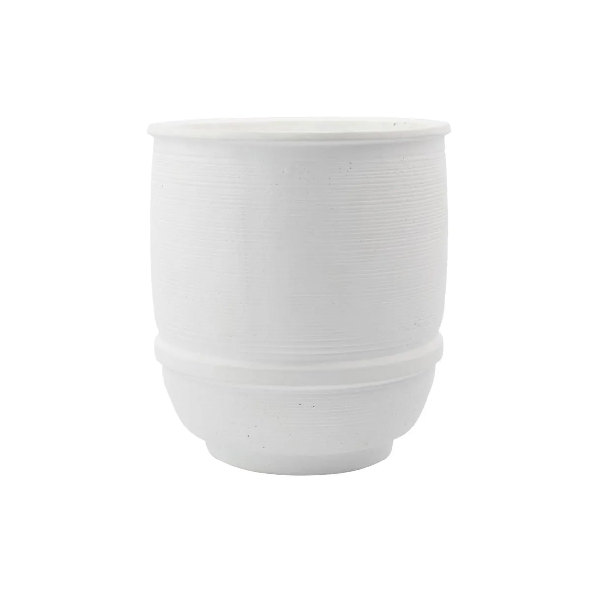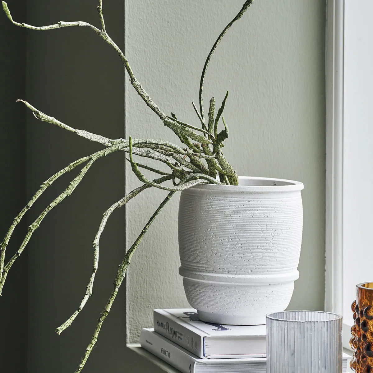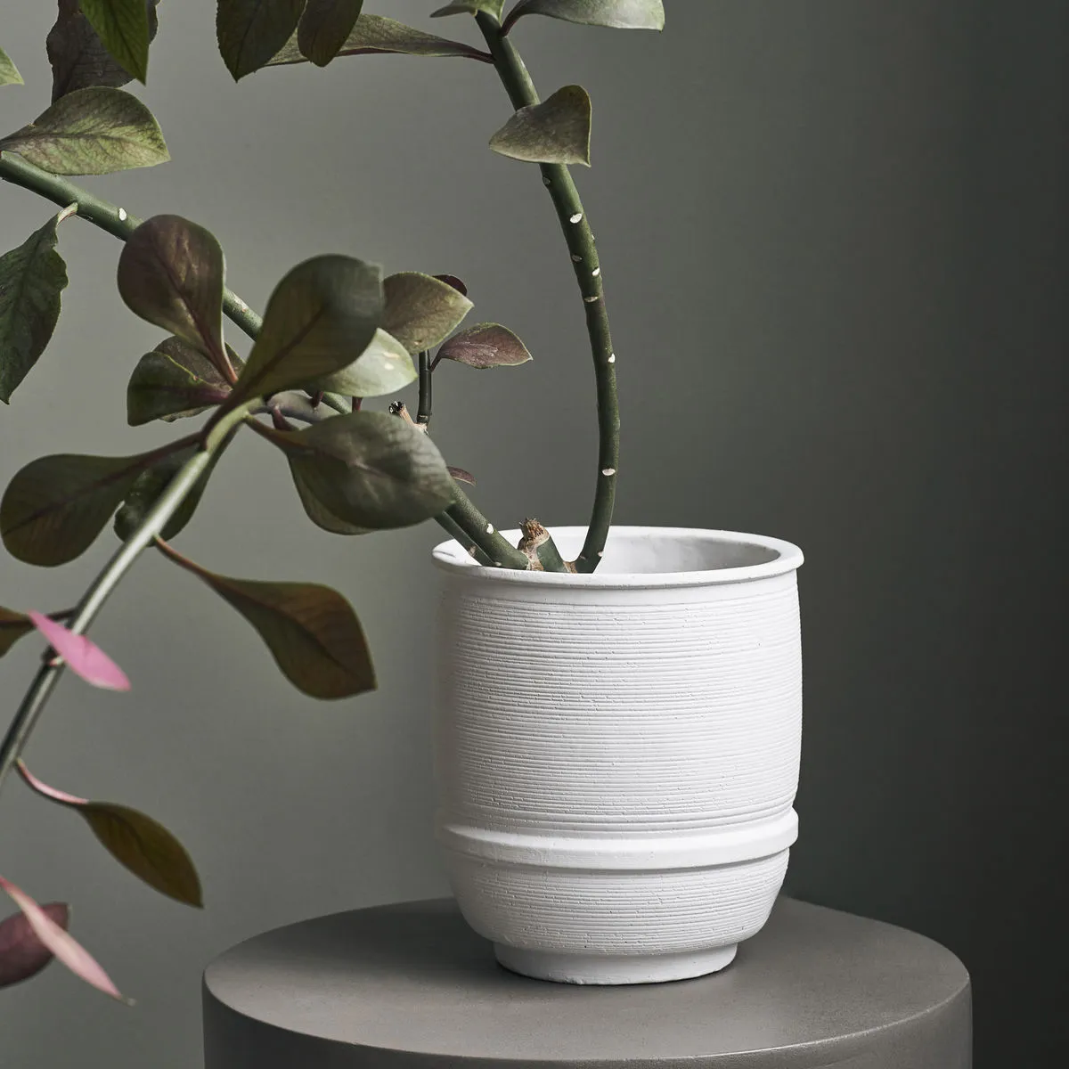 Valkoinen ruukku Ground Planter on rustiikkinen ja ihanan epätäydellinen. Ruukkua on saatavilla kahdessa eri koossa ja se sopii olohuoneeseen, keittiön ikkunaan tai makuuhuoneeseen.