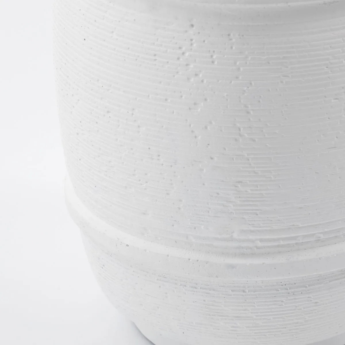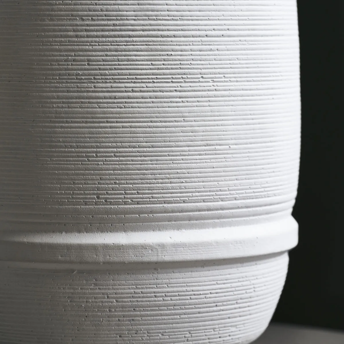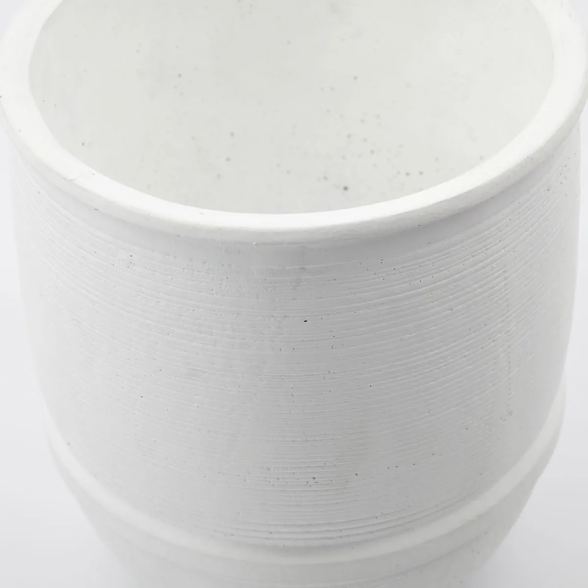 Valkoinen ruukku Ground Planter on rustiikkinen ja ihanan epätäydellinen. Ruukkua on saatavilla kahdessa eri koossa ja se sopii olohuoneeseen, keittiön ikkunaan tai makuuhuoneeseen.
