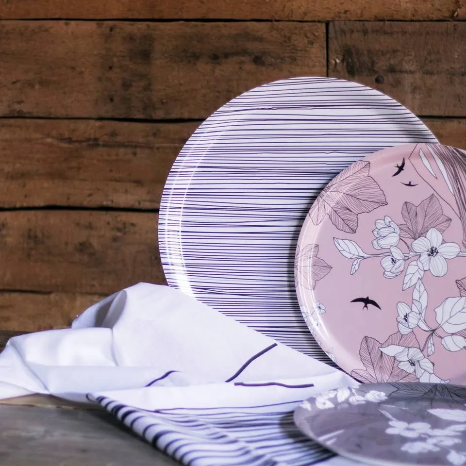 Vaaleanpunainen tarjotin luotiin keväällä, kun vaaleanpunaiset omenakukat kukkivat Pohjanmaalla. Vaaleanpunainen tarjotin on romanttinen ja rauhallinen elementti Pohjanmaa-sarjassa. Sitä saatiin ensin rajoitettu erä, mutta suuren suosionsa ansiosta se päätettiin jättää vakio valikoimaan.