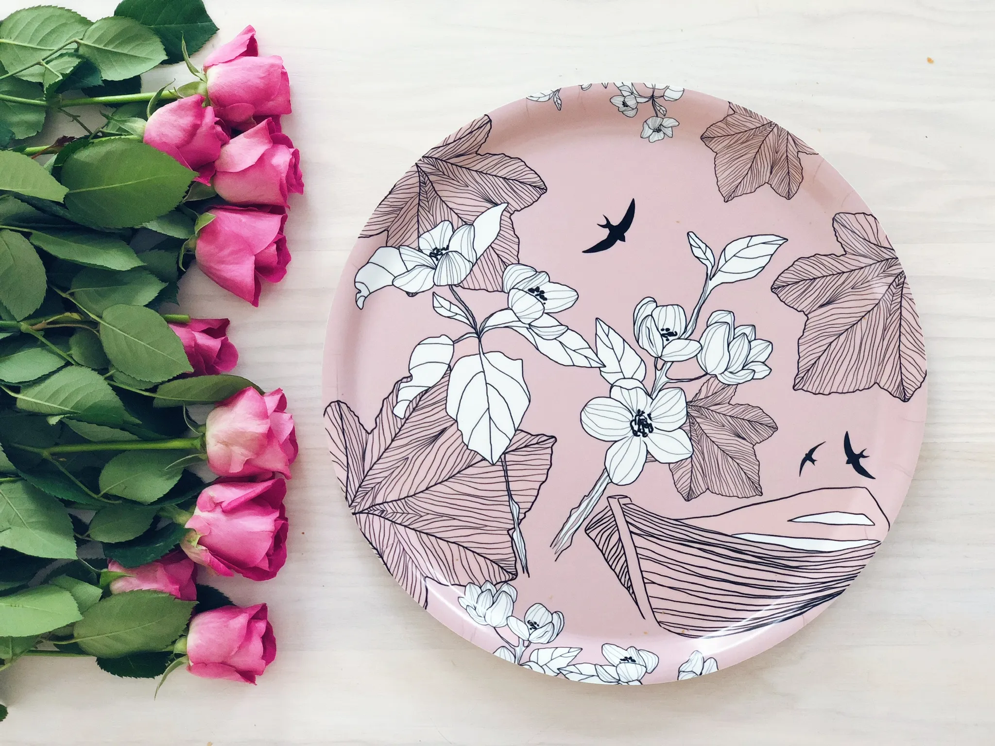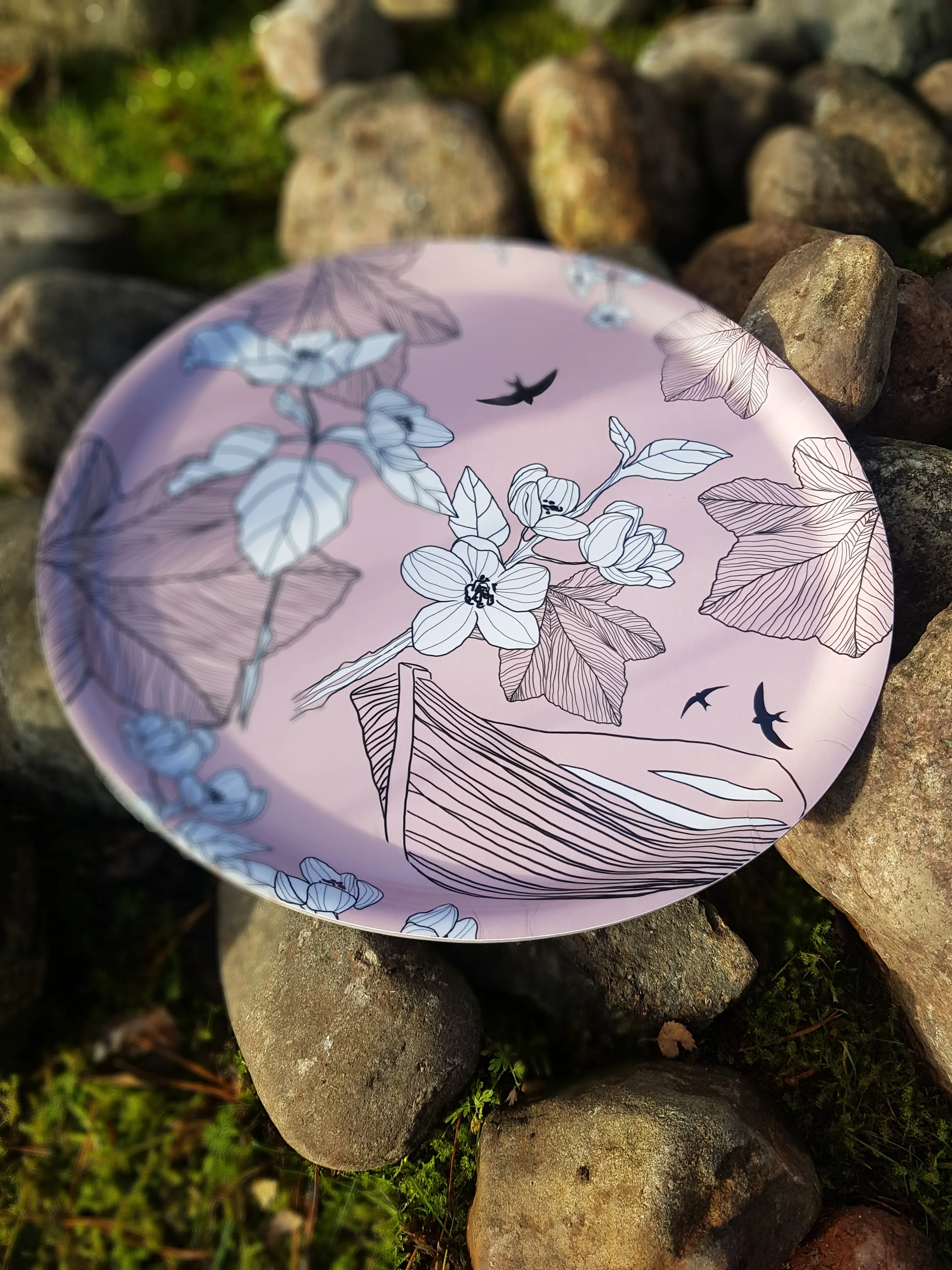 Keväinen vaaleanpunainen Pohjanmaa-tarjotin luotiin keväällä, kun vaaleanpunaiset omenakukat kukkivat Pohjanmaalla. Vaaleanpunainen tarjotin on romanttinen ja rauhallinen. Kaunis lahja valmistuneelle, syntymäpäiviin, äitienpäivänä tai tupareihin.
