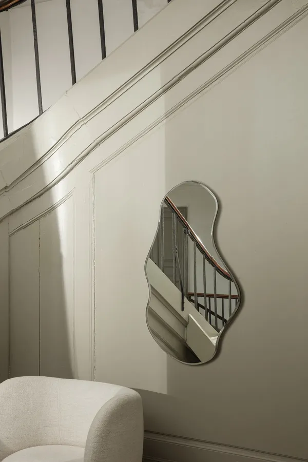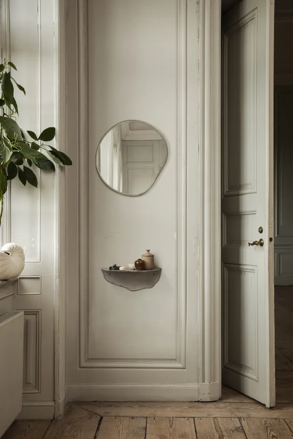 Ferm Livingin Pond Mirror epäsymmetrinen peili tuo eleganssia ja tyylikkyyttä kotiisi. Tämä ainutlaatuinen ja tyylikäs peili tuo tilaan paitsi toiminnallisuutta, myös ripauksen luksusta. Pond Mirror on suunniteltu heijastamaan luonnon orgaanisia muotoja, mukaillen lampien pehmeitä ja kaarevia linjoja. Sen epäsymmetrinen muotoilu luo dynaamisen ja modernin ilmeen, joka sopii monenlaisiin sisustustyyleihin.