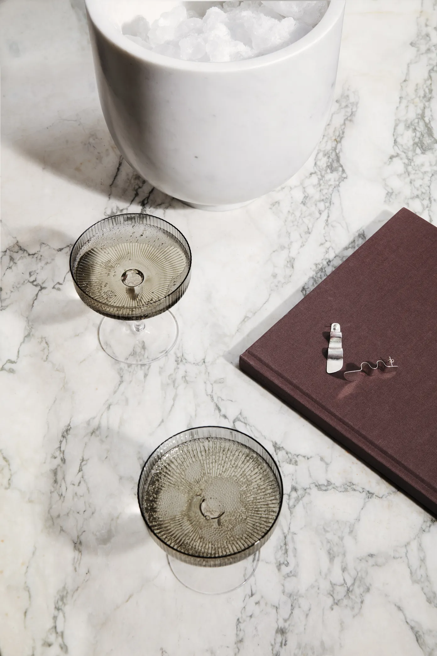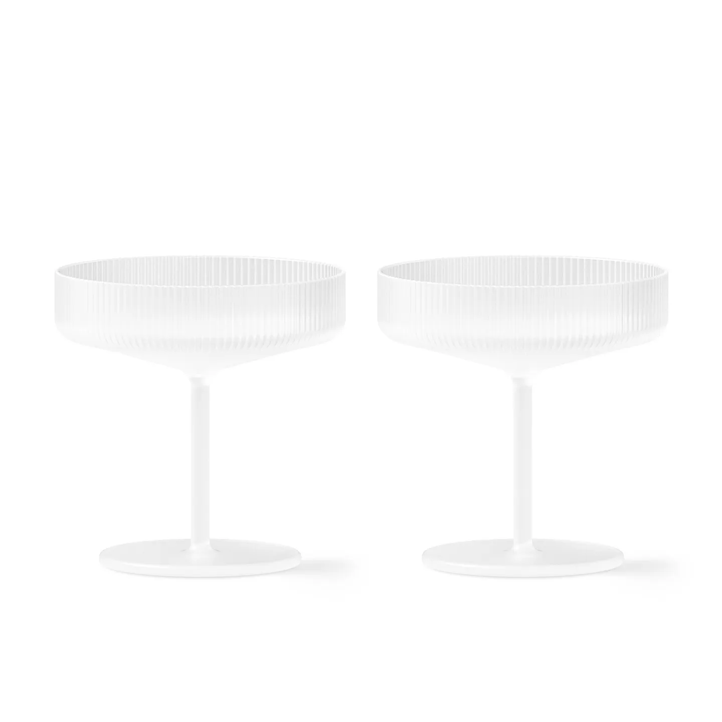 Samppanjalasit Ripple Champagne Saucer tekevät juhlasta erityisen juhlallisen. Lasit ovat puhallettuja ja muotoiltuja käsin raidalliseen muotonsa. Saatavilla kahden lasin setissä.