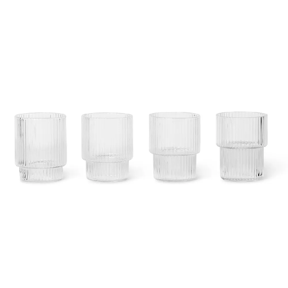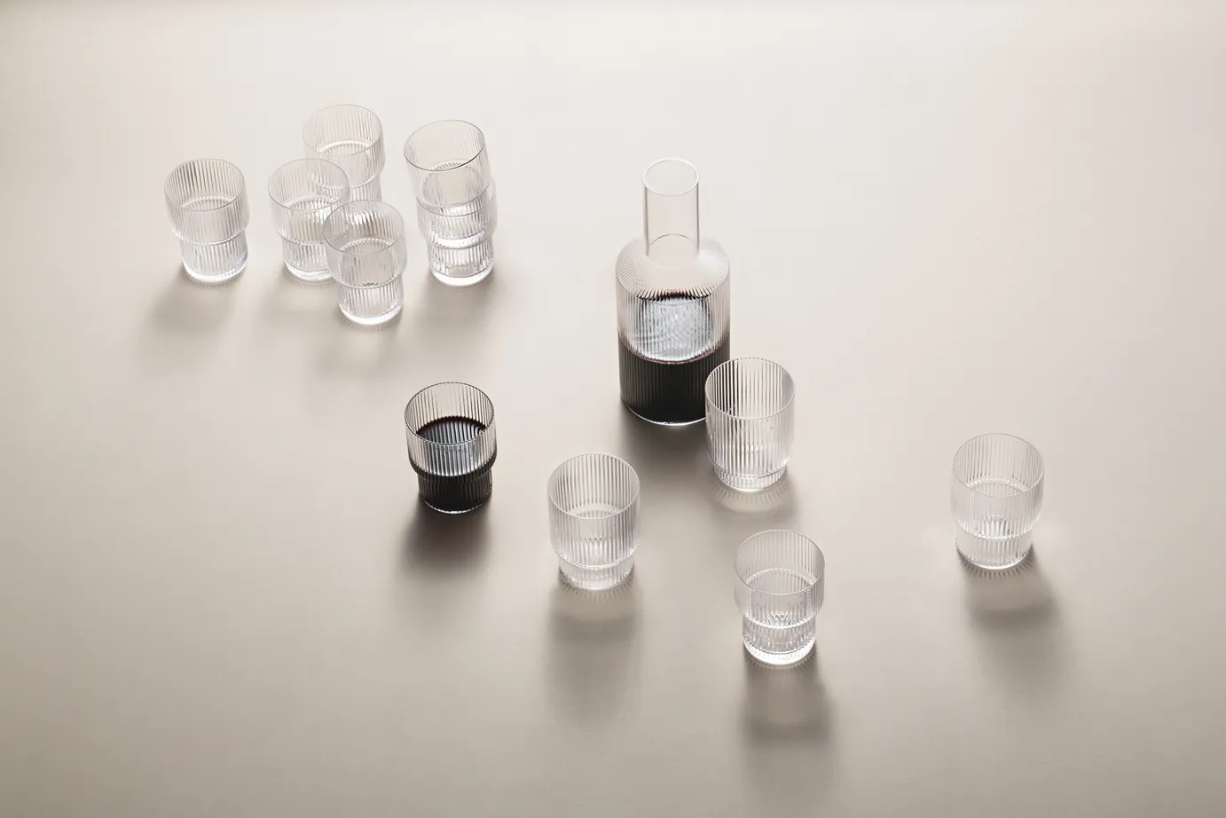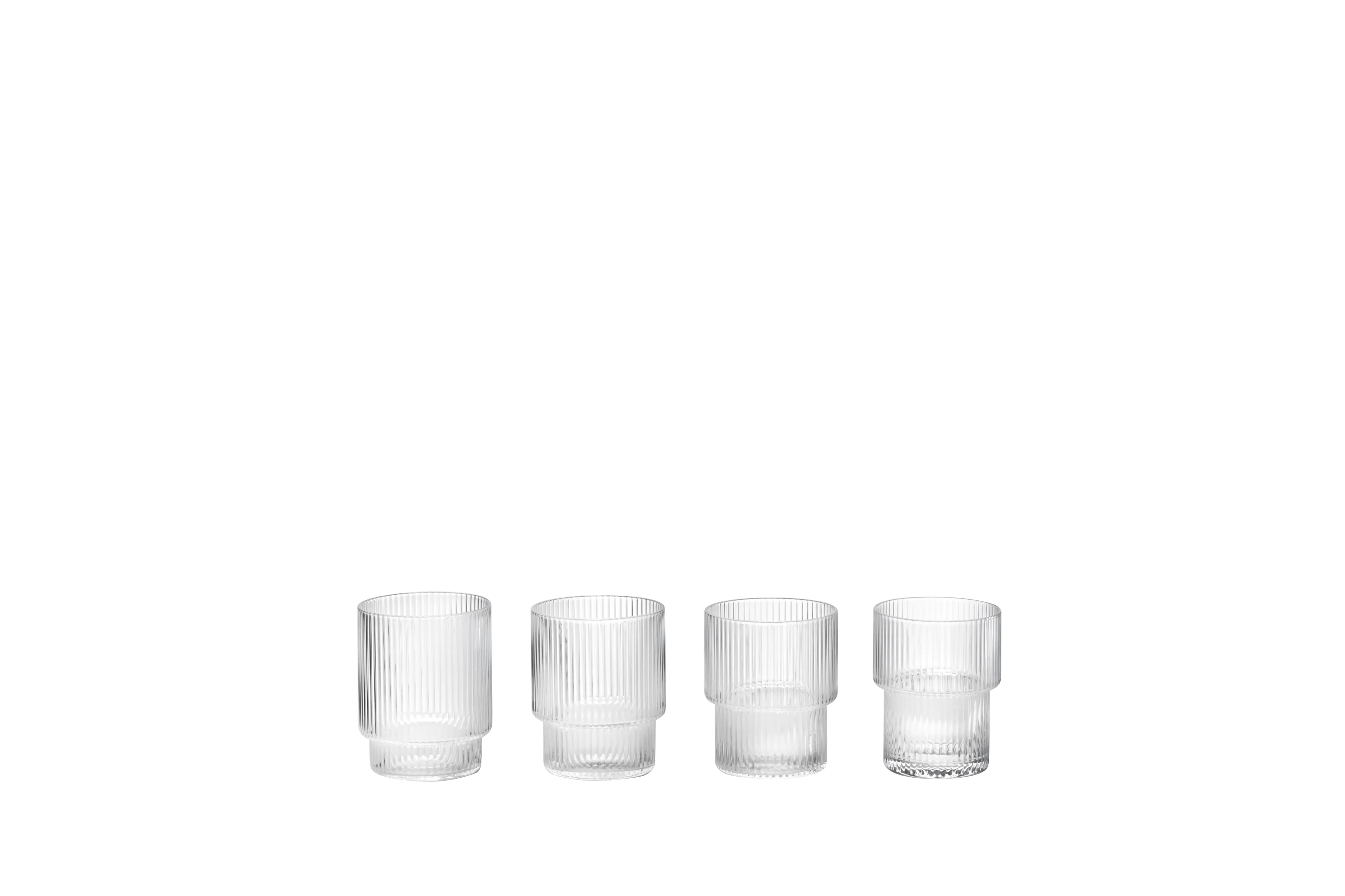 Ripple Small Glass -shottilasit puhalletaan ja muotoillaan käsin ja saavat näin kauniin raidallisen kuvion. Lasit ovat erilaisia, mikä luo dynaamisuutta kattaukseen. Lasit ovat pinottavia ja konepestäviä. Tyylikäs shottilasi juhlaan. Lasien tilavuus on 6 cl.