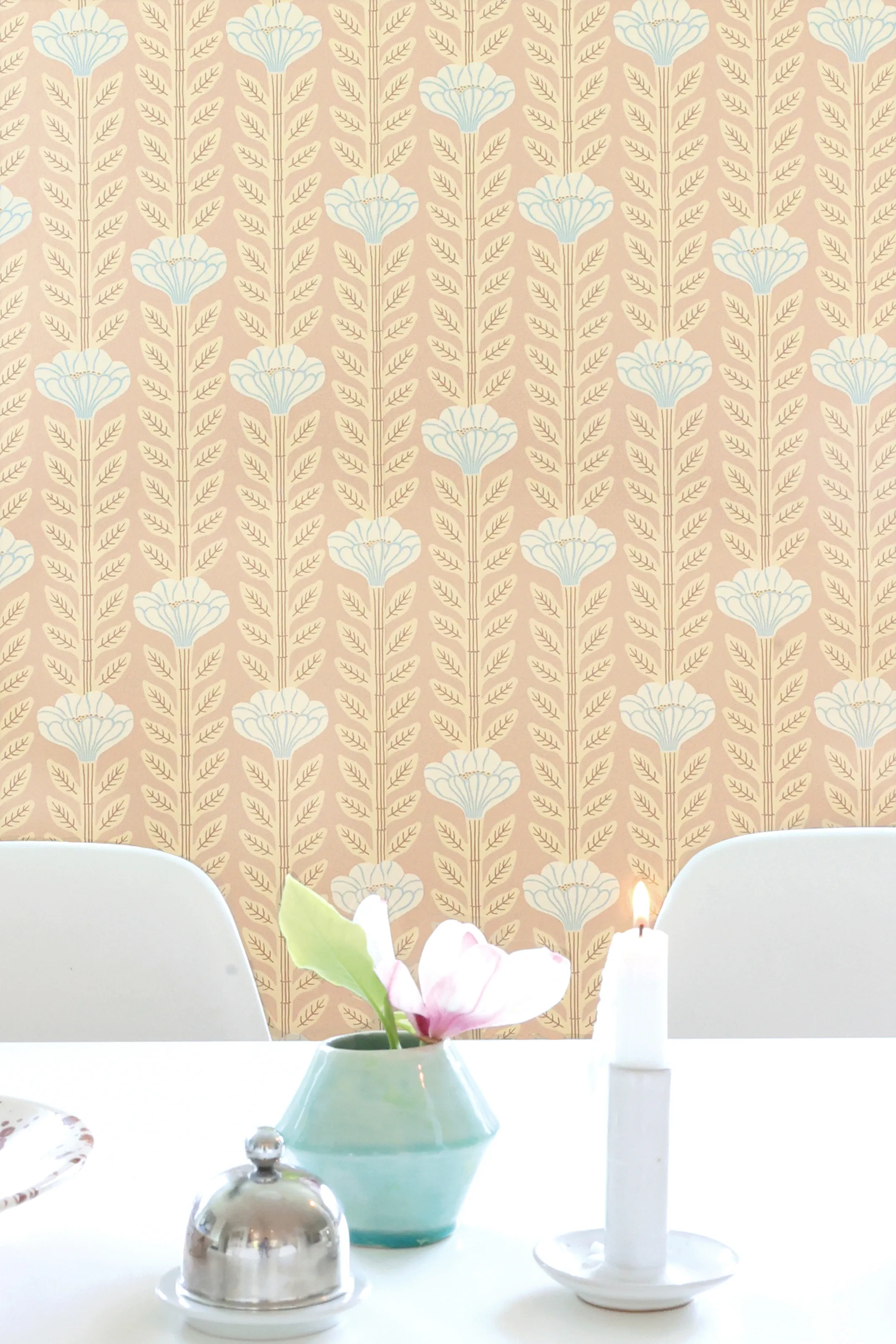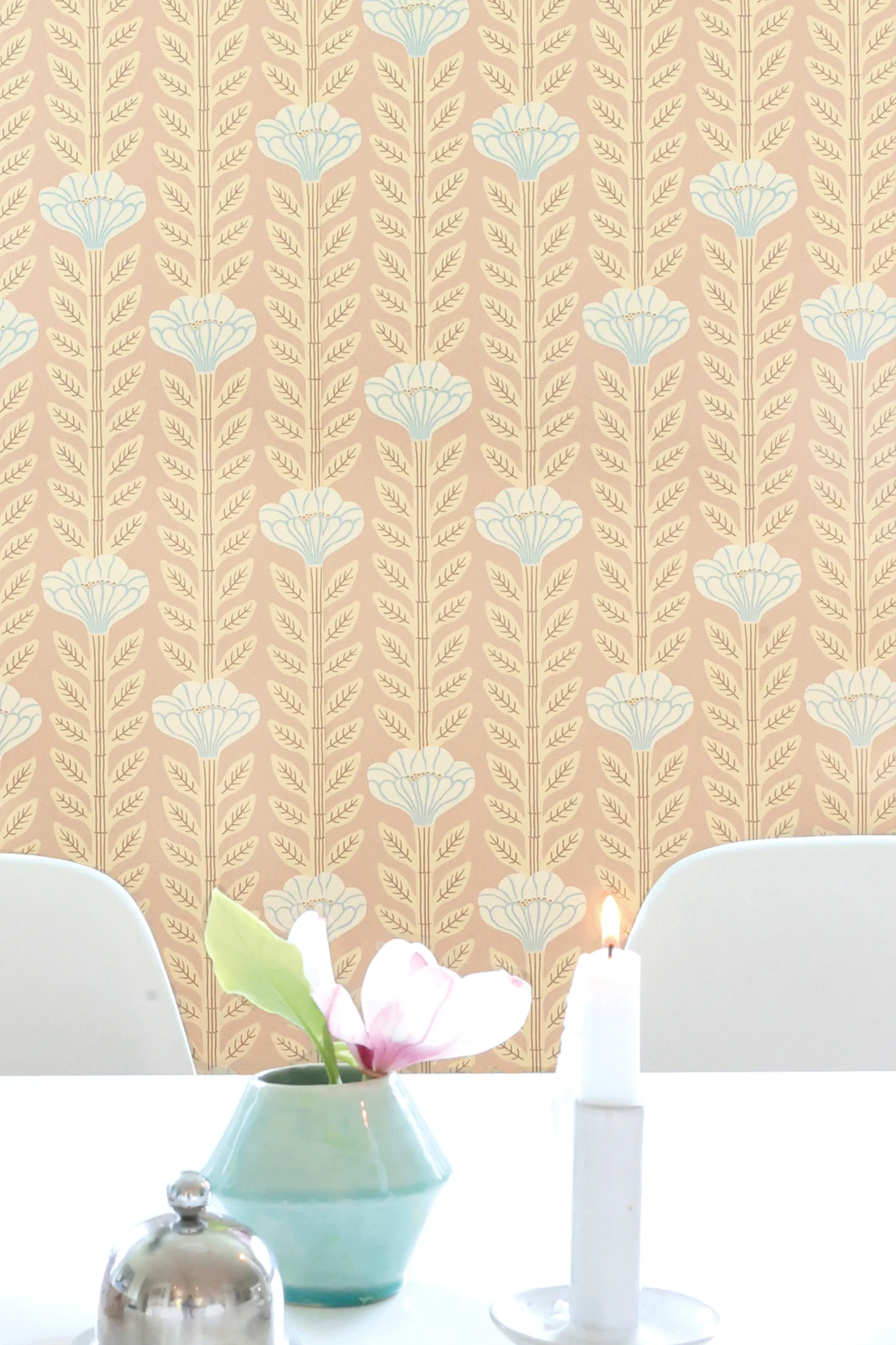 Caipirinha-tapetti Majvillanilta on kuin lämmin tuulahdus luonnosta. Sen kauniisti toistuva kukkakuvio kasvaa pystysuunnassa kuin kepeä niitty, tuoden seinälle rytmiä ja eloa. Herkkä muotokieli yhdistää klassisen ja modernin tyylin harmonisesti, luoden seesteisen mutta elävän tunnelman.