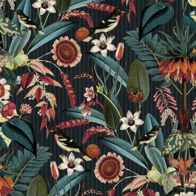 Eden Nightfall on kaunis kukkakuvioinen muraalitapetti, jossa kukat ovat tiiviissä ja intensiivisessä kuviossa. Tämä kaunis tapetti sopii olohuoneeseen, kotitoimistoon, ruokasaliin tai makuuhuoneeseen.