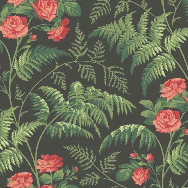 Flamenco Fan on romanttinen kukkatapetti, jossa on ruusuja ja neilikoita. Ihanan tiheä kuvio, jossa on hieman metallinhohtoa. Ihana tapetti olohuoneeseen ja ruokailutilaan.