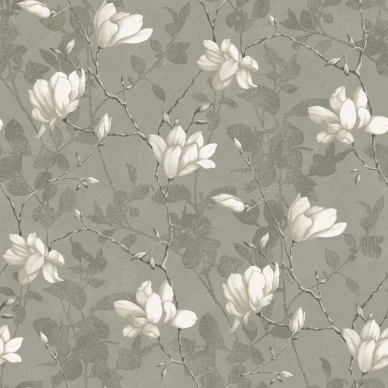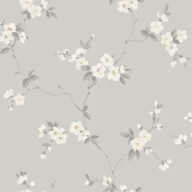 Helen's Flower on suurikuvioinen kukkatapetti, jossa on maalaisromanttinen henki. Kauniita vuokkoja muistuttavat kukat ikäänkuin leijuvat tapetilla ja se tekee siitä ihastuttavan kevyen.