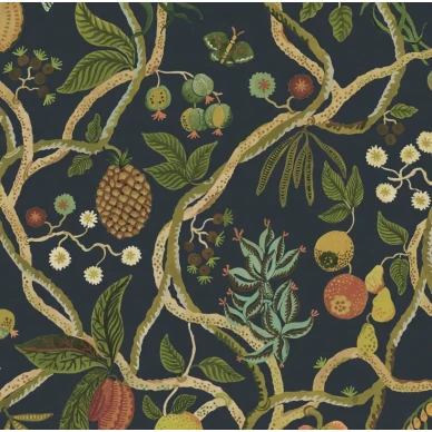 Boråstapeterin Ingrid Marie-tapetti kuvaa omenapuuta keväästä syksyyn ja sieltä löydät kukkia, raakileita- ja isoja auringon kypsyttämiä omenoita.