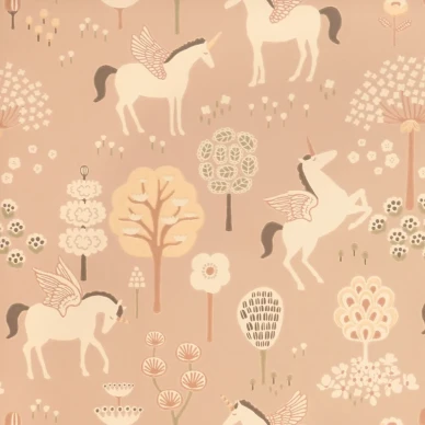 Hauskassa Lama Village-tapetissa on laamoja kylässä, jonka laidoilla kasvaa kaktuksia. Tapetti sopii hyvin monen ikäisen huoneeseen.