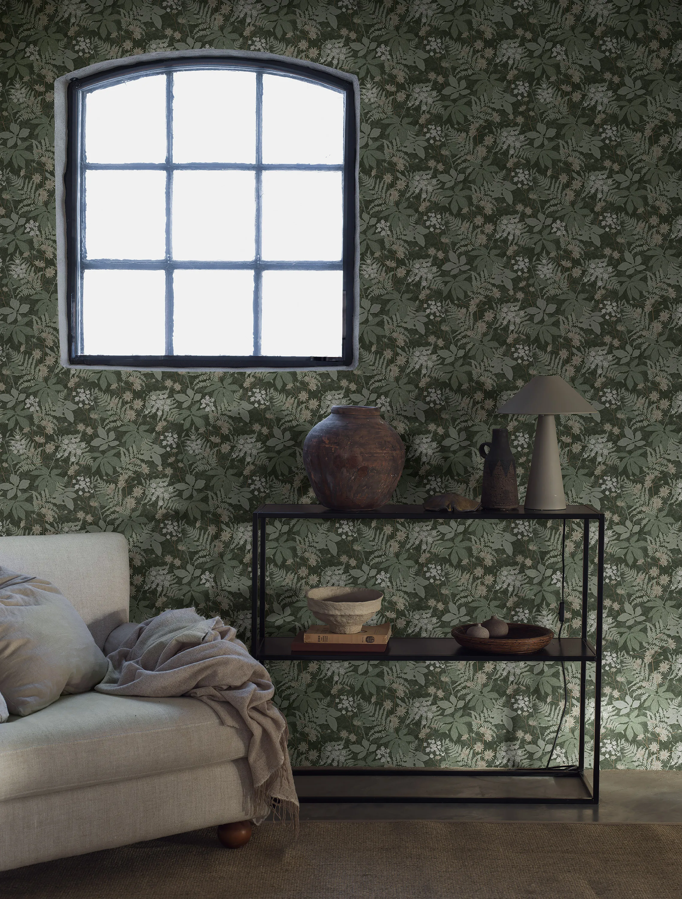 Boråstapeterin kukkainen tapetti Lindskog vie meidät metsään, jossa on tiheät lehdet ja kauniit kukat. Moderniin skandinaaviseen tyyliin sopiva tapetti, joka sopii olohuoneeseen, eteiseen, makuuhuoneeseen ja kotitoimistoon.