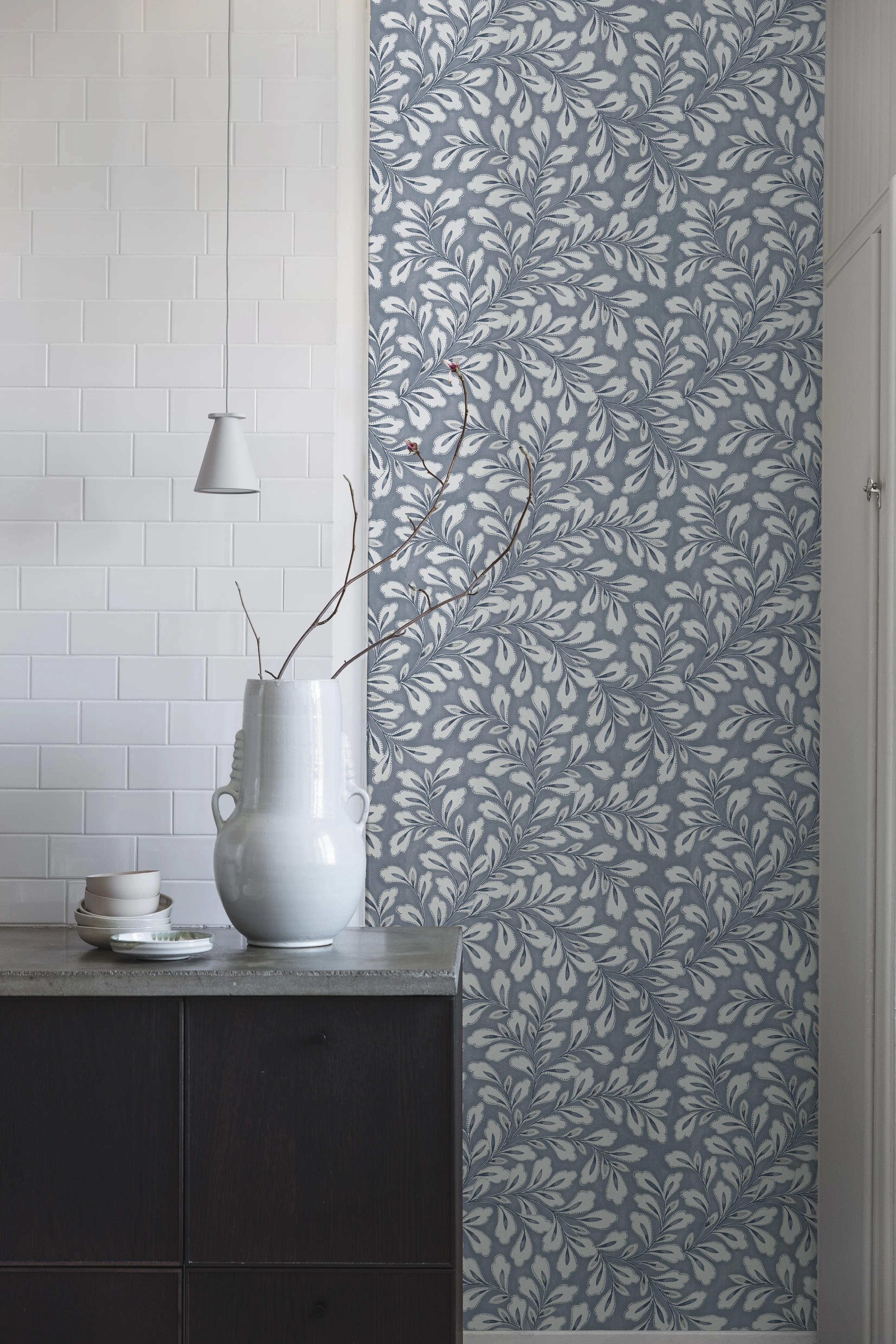 Boråstapeterin Liv lehtitapetissa on tiivis ja aaltoileva kuvio, joka on moderni versio perinteisestä lehtitapetista. Meleerattu pinta antaa tapetille kauniin patinan ja se sopiikin keittiöön, olohuoneeseen ja kotitoimistoon.