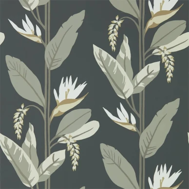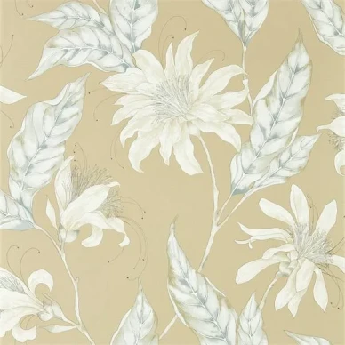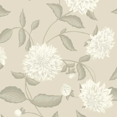 Kukkatapetti Lustica herkkä kuvio nousee köynnömaisesti ylöspäin. Yksinkertaista tapettia on piristetty metallin hohtoisilla yksityiskohdilla.