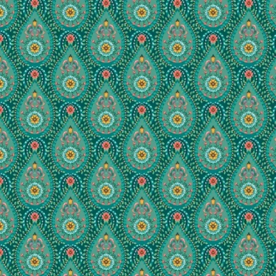 Designers Guildin Minakari tapetissa on kauniin värikäs pohja, jossa on ihana kukkakuviointi. Yksi rulla riittää seinään joka on 140cm leveä ja 300cm korkea. Kuosi voidaan jatkaa sivusuunnassa.