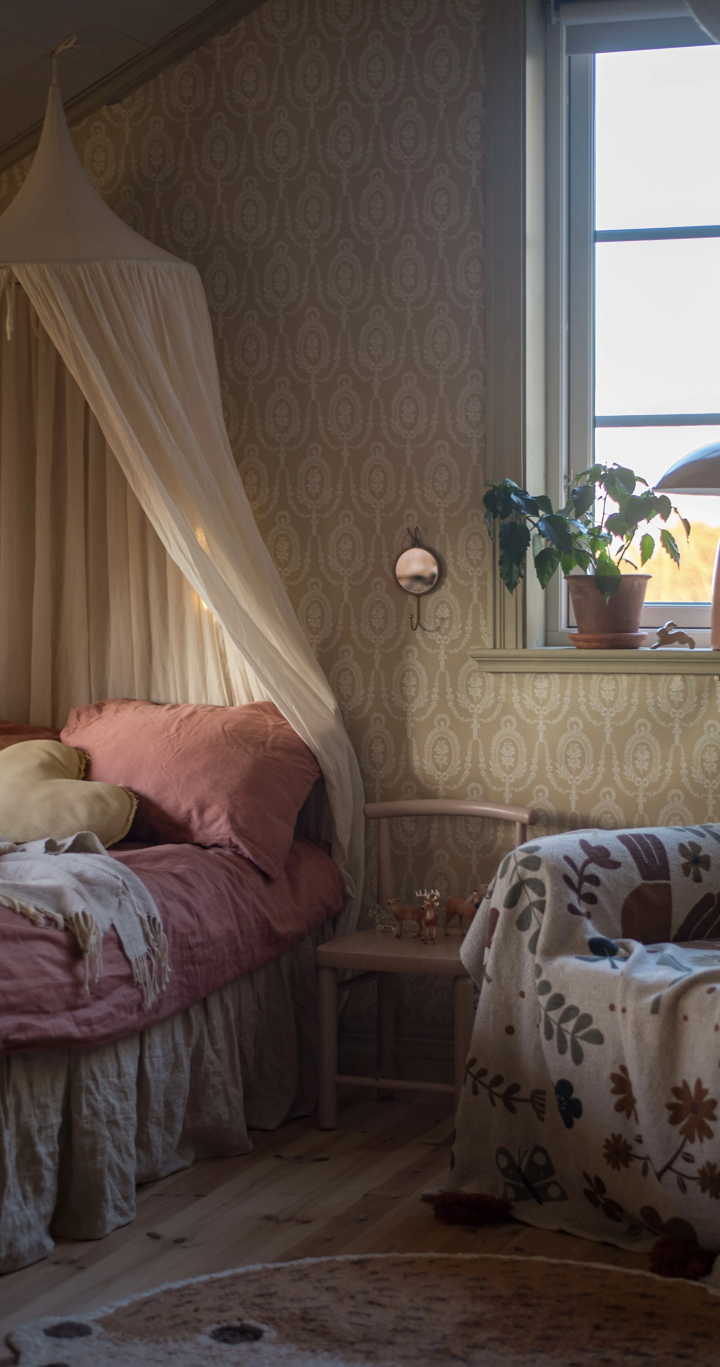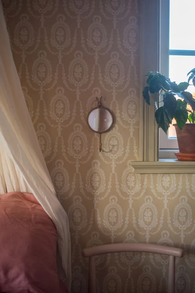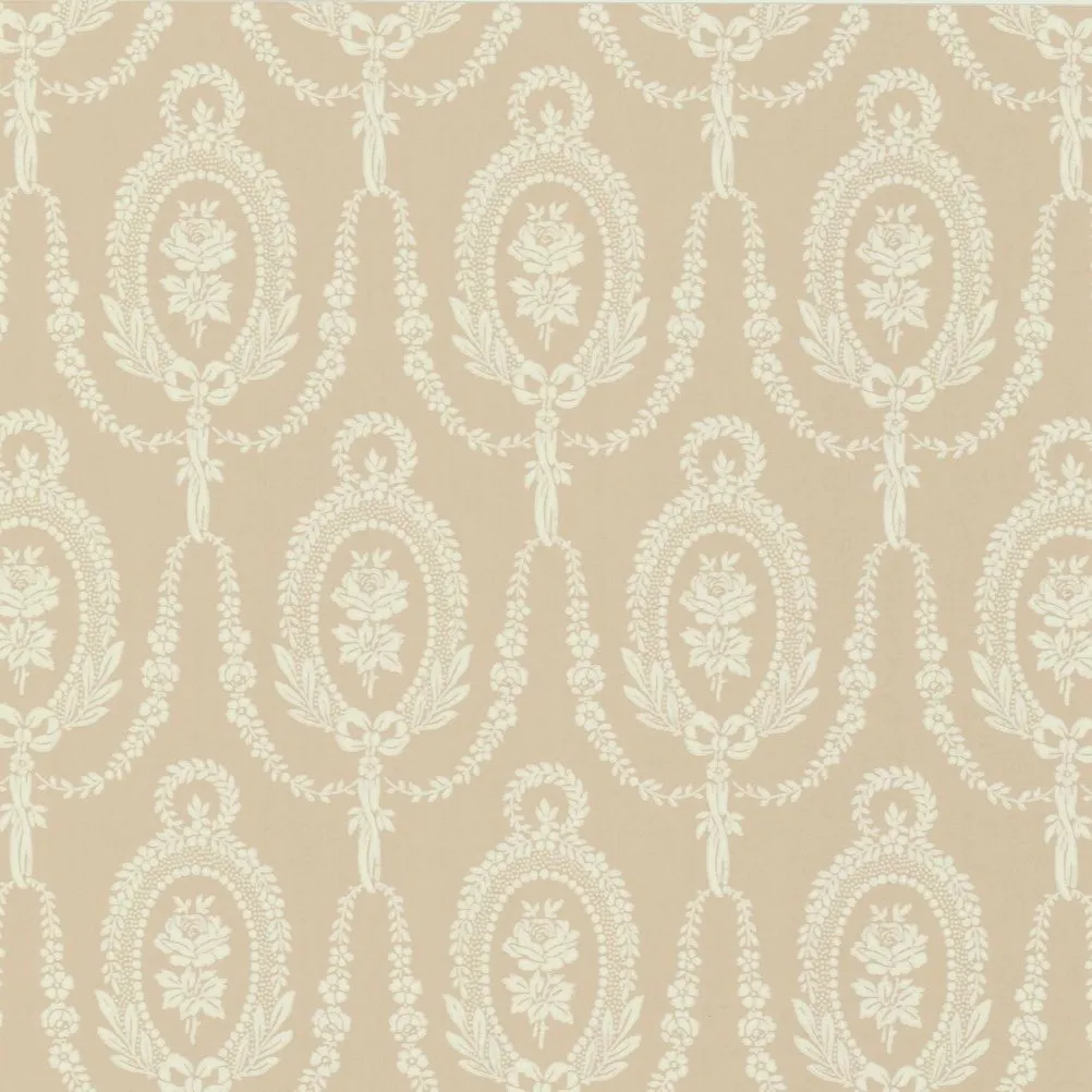 Rosmedaljong-tapetti Ulricehamns Tapetfabrikin mallistosta Modern Classics huokuu klassista eleganssia ja ajattoman kaunista sisustusta. Sen toistuva medaljonkikuvio kehystää herkkiä kukka-aiheita, jotka asettuvat symmetriseen rytmiin kuin huolellisesti sidotut seppeleet. Hienostuneet yksityiskohdat ja pehmeästi kaartuvat muodot luovat tapettiin rauhallisen mutta arvokkaan ilmeen.