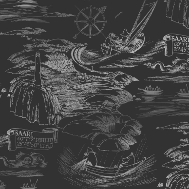 Boråstapeterin Sailboats laivatapetissa on meneillää purjehduskilpailu raikkaassa tuulessa, jossa roiskuu suolavesi ja lokit seuraavat mukana. Kuosi on peräisin viime vuosisadan puolivälistä, mutta on saanut modernin ilmeen.
