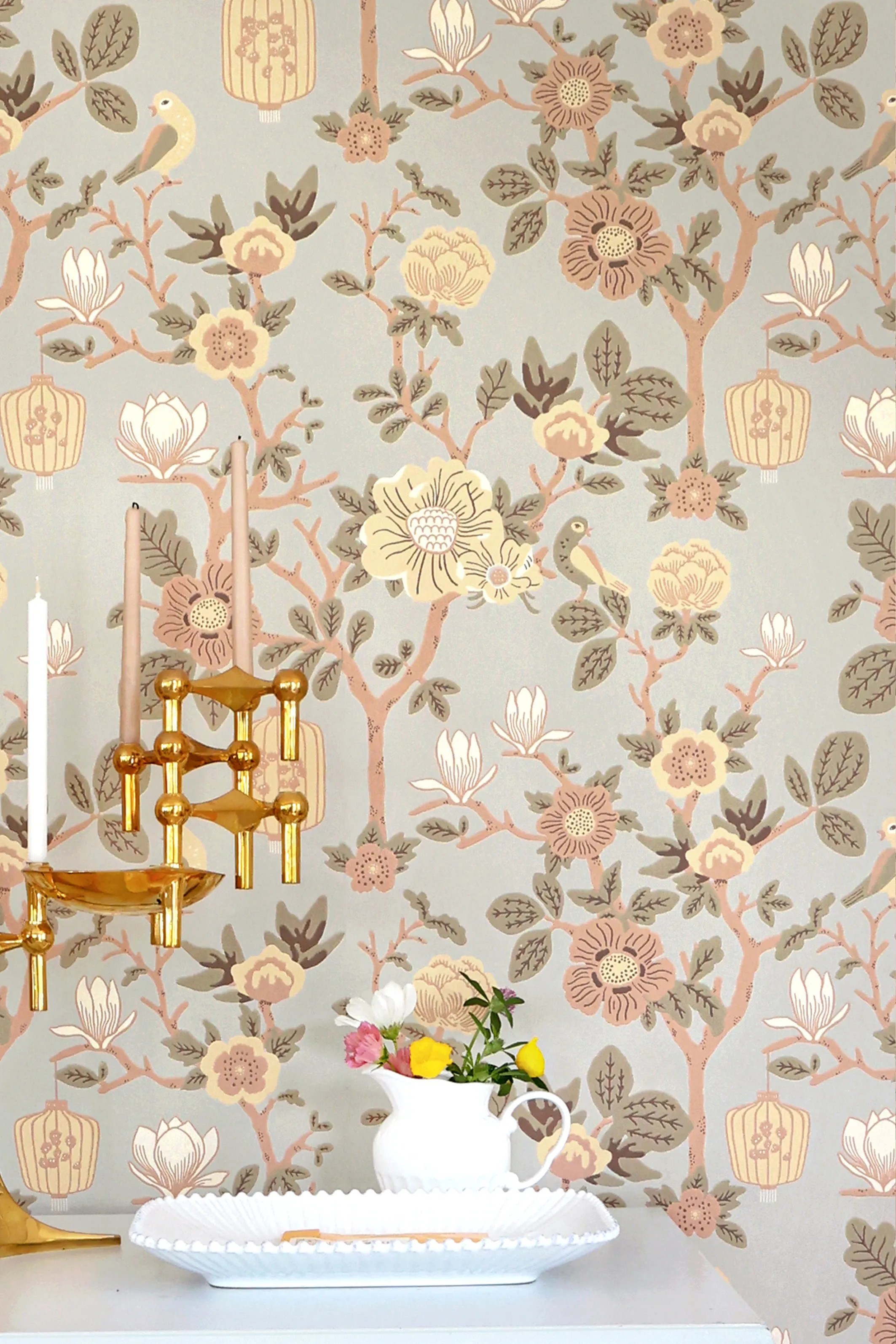 Majvillanin Tokyo Tea -tapetti on kuin lämmin tuulahdus japanilaista estetiikkaa – herkkä, harmoninen ja rauhoittava. Kuosissa toistuvat pehmeälinjaiset teekupit, kukkivat oksat ja orgaaniset muodot, jotka yhdessä luovat tasapainoisen ja lempeän rytmin. Tapetin hillitty graafisuus ja luonnon inspiroima sommittelu tuovat huoneeseen rauhaa ja ajatonta eleganssia.