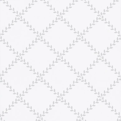 Boråstapeterin Trellis Leaves salmiakki kuvioinen lehtiköynnöstapetti on palannut. Uudet vaaleat värit luovat keveän tunnelman huoneeseen.