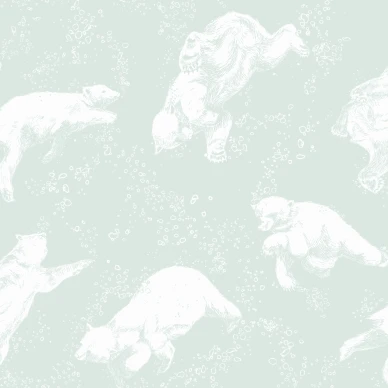 Boråstapeterin Whales on rauhallinen lastenhuoneen tapetti, jossa valasperhe uiskentelee krilliparven perässä.