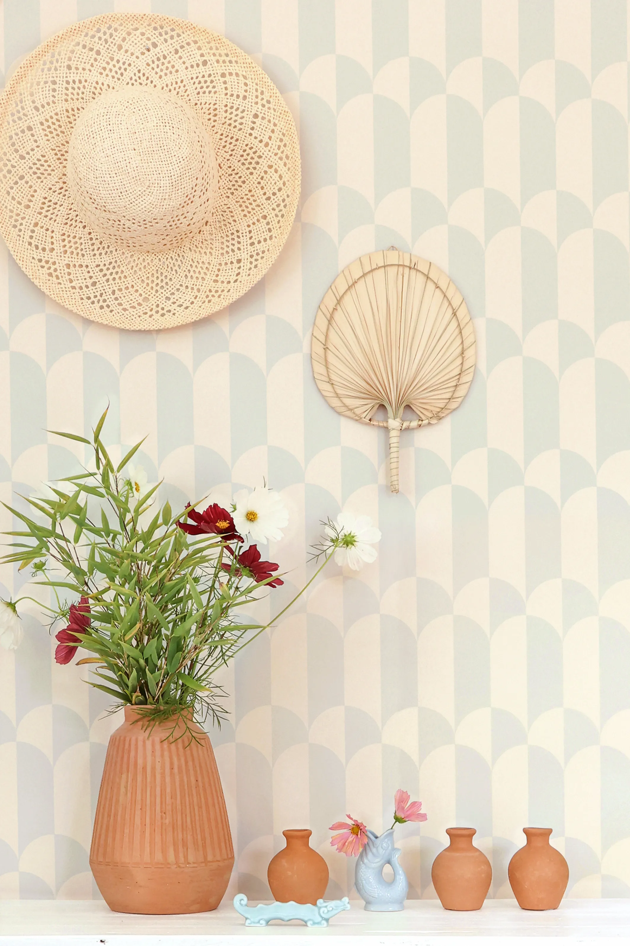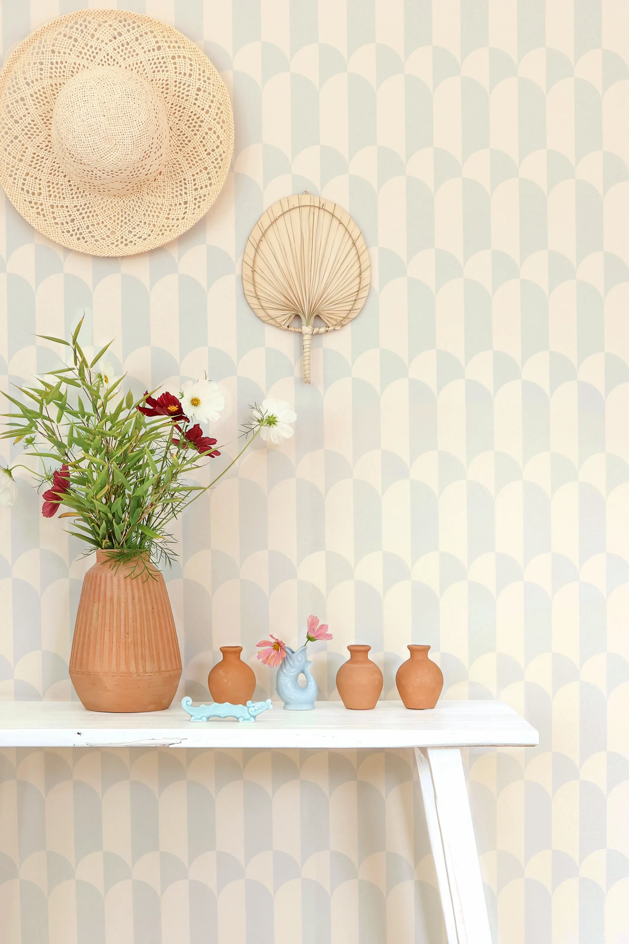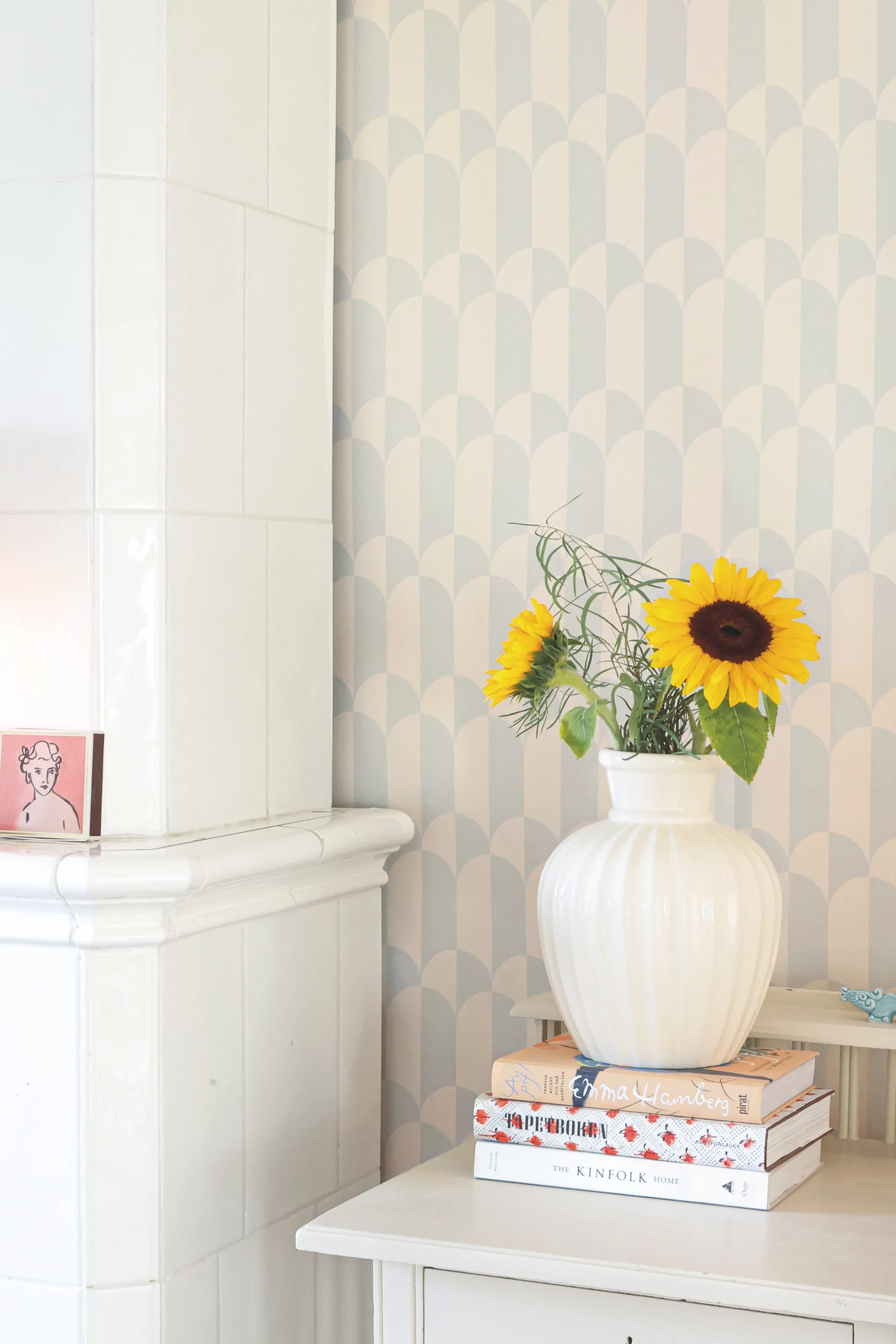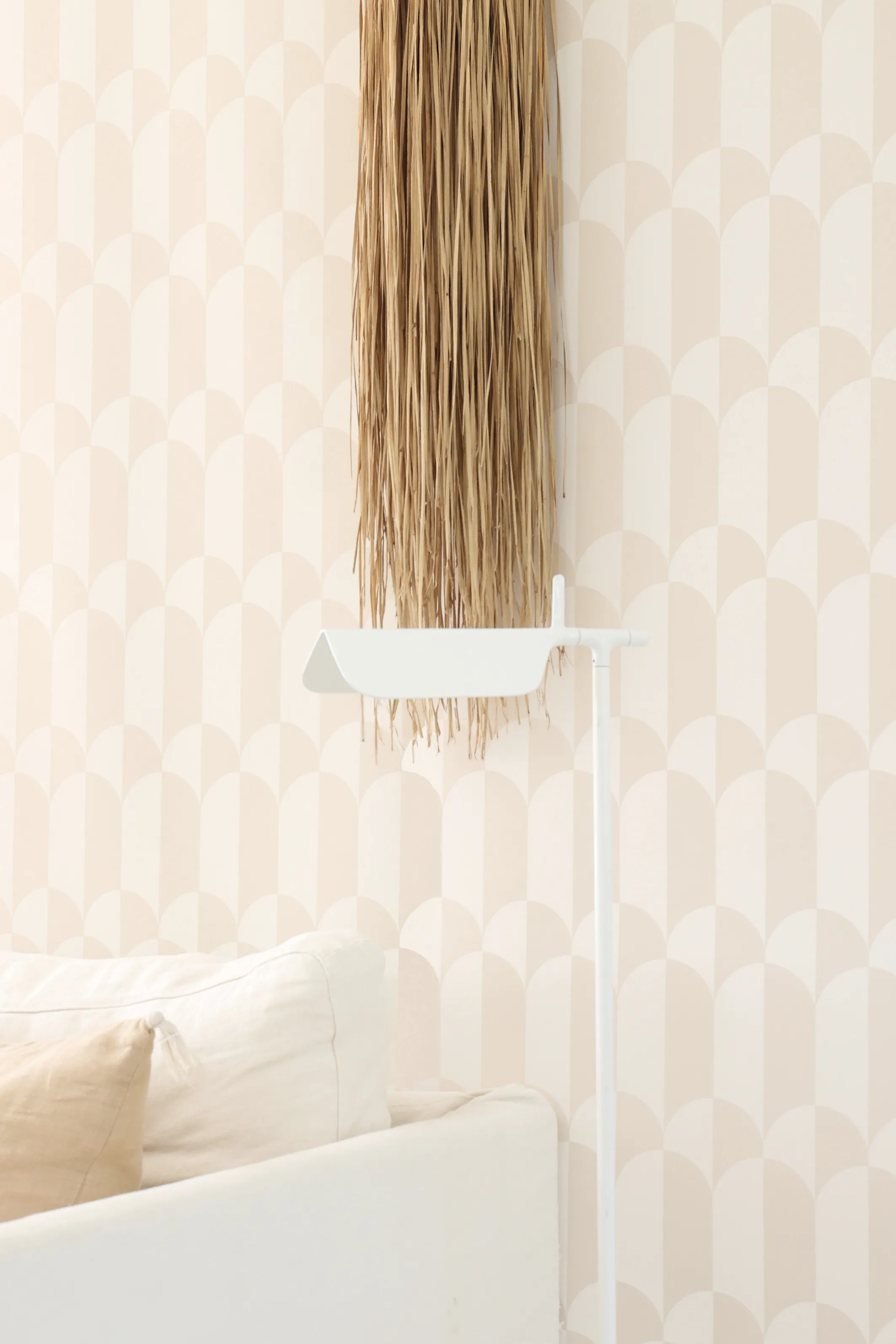 Whipped Cream -tapetti Majvillanilta tuo kotiin lempeää rytmiä ja rauhaa. Sen pehmeästi aaltoileva, toistuva kuvio rakentaa seinälle harmonisen liikkeen, joka tuntuu sekä modernilta että ajattomalta. Geometrinen muotokieli luo hienovaraista eloa, joka tekee tilasta avaran ja kevyen – kuin valo leikkisi pinnalla.