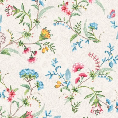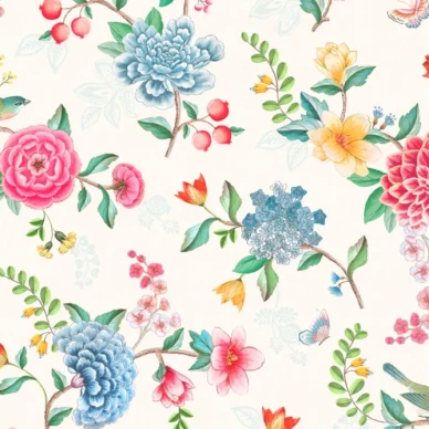 Woodland Floral on kuin elävä tarina, joka herää seinilläsi eloon – se tuo kotiisi iloa, väriä ja ripauksen taianomaista tunnelmaa, joka saa hymyn huulillesi päivästä toiseen.