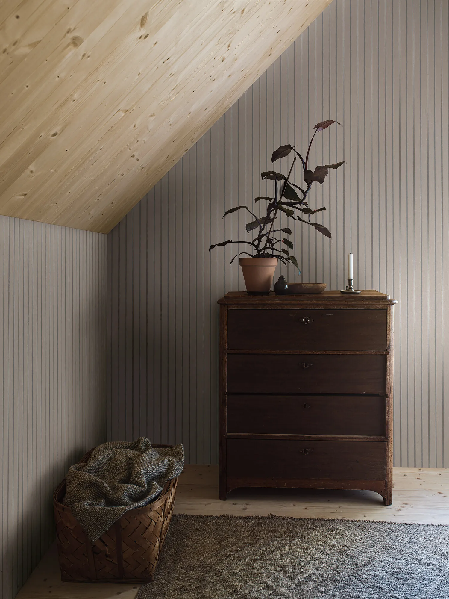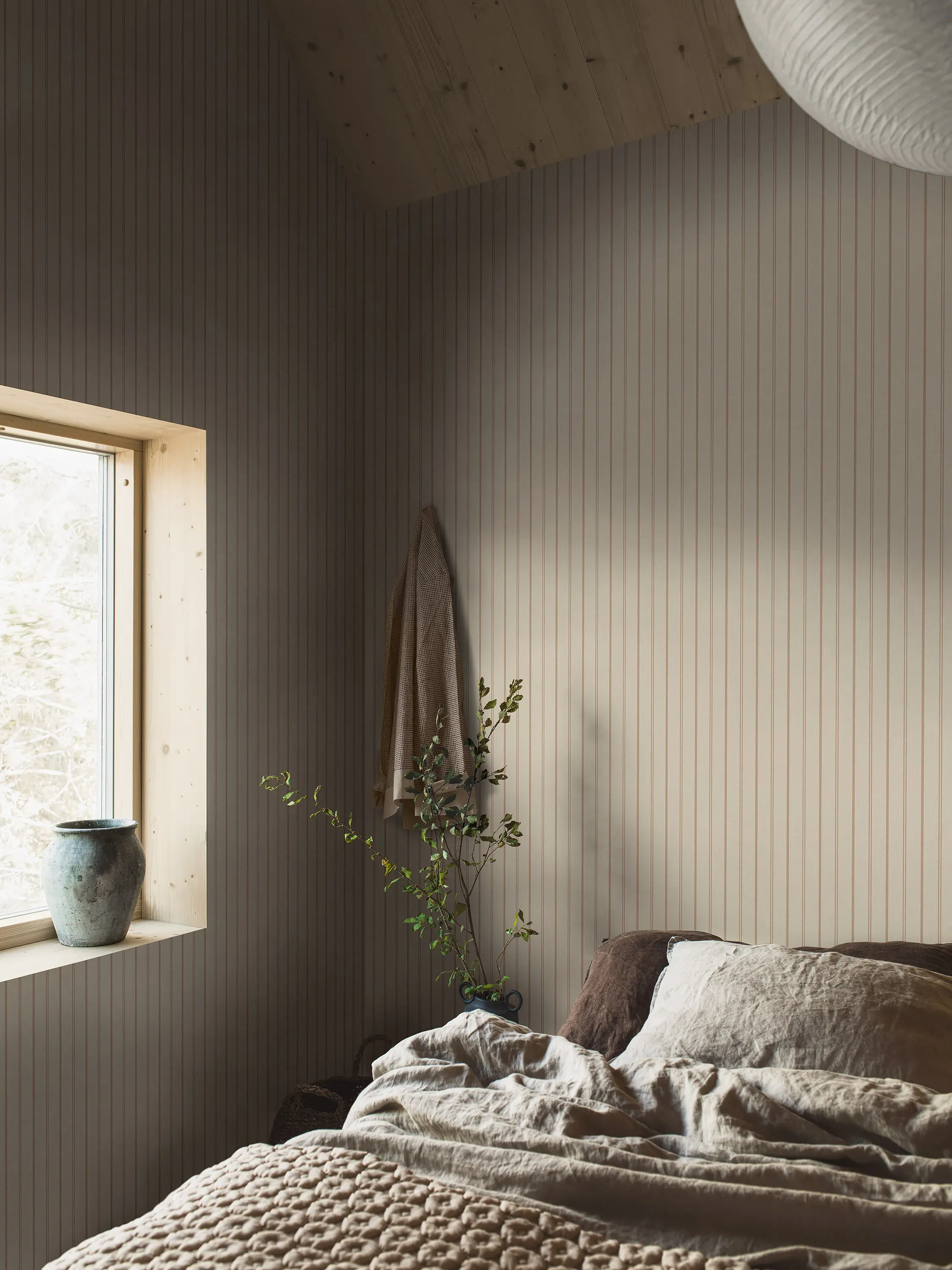 Woodland Stripe tapetissa on ajaton, mutta samalla moderni kuviointi. Raidallisessa tapetissa on pellavastruktuuri. Se on kodikas tapetti eteiseen, keittiöön ja makuuhuoneeseen.