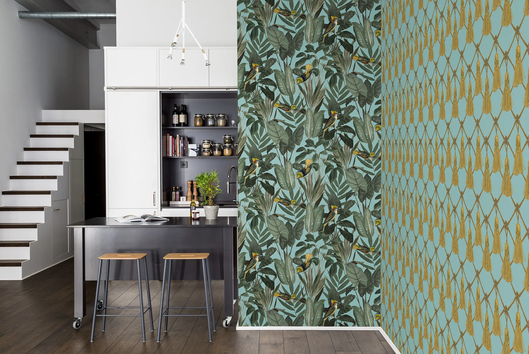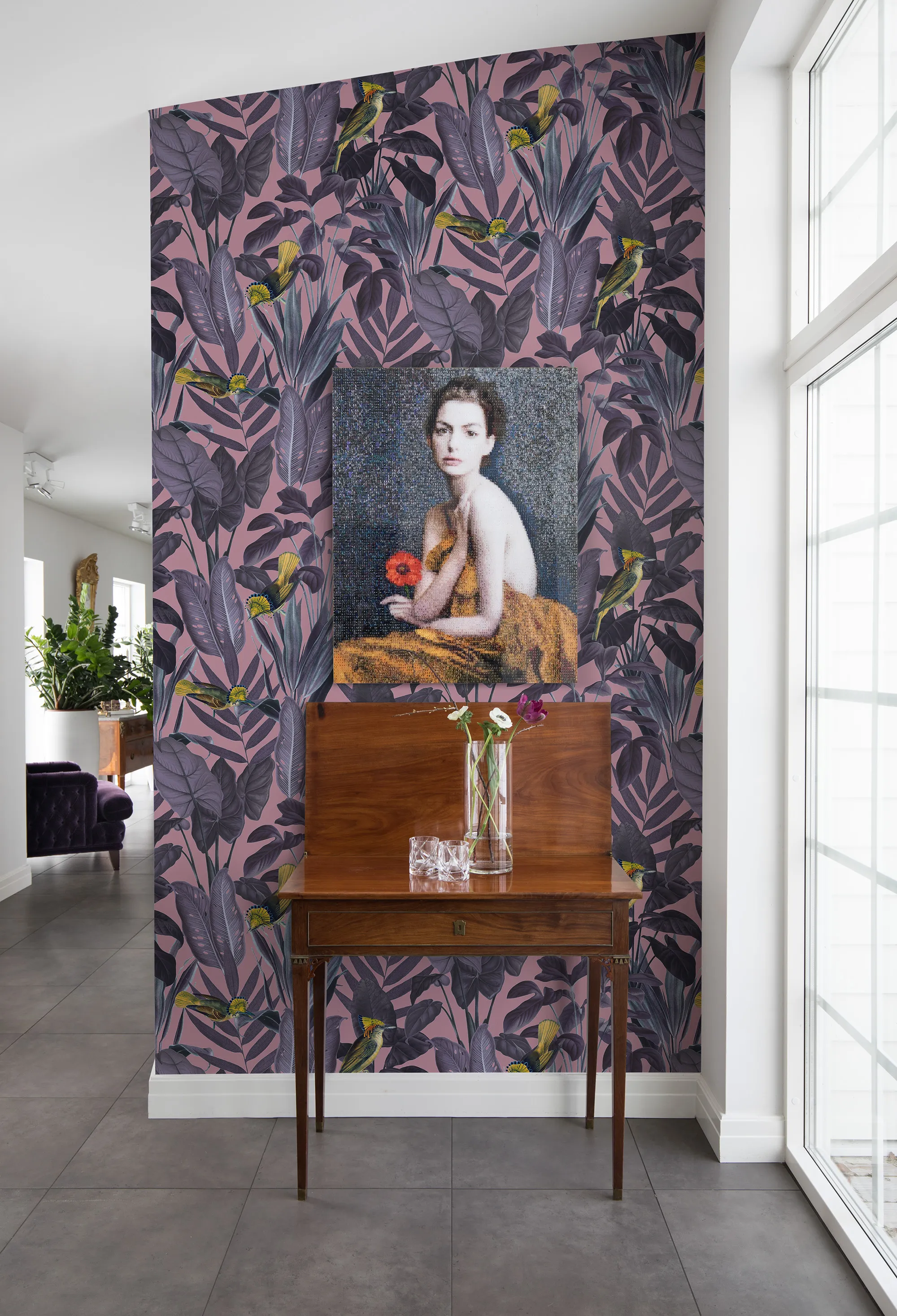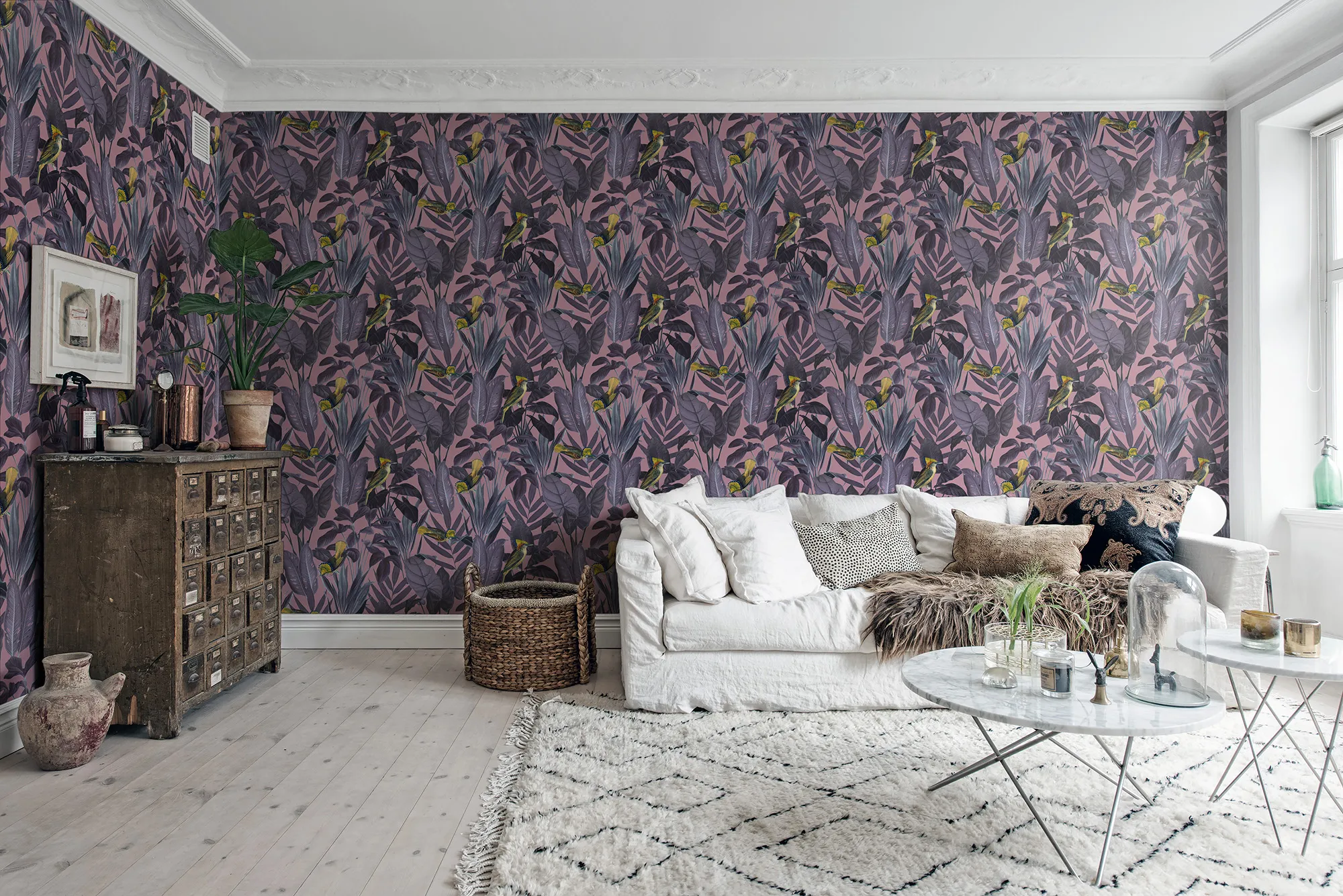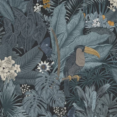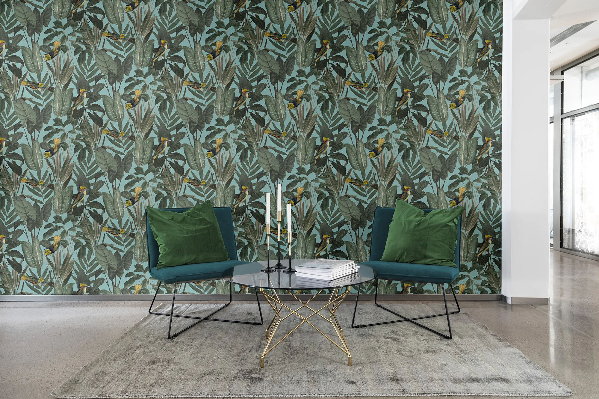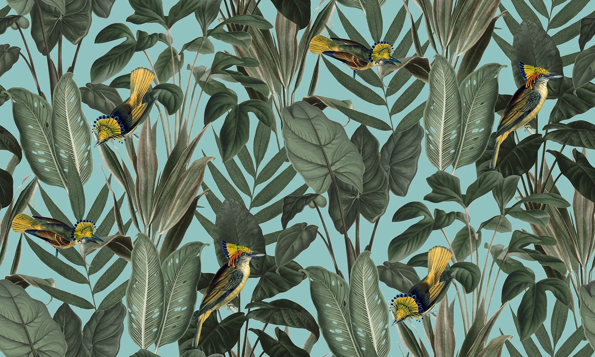 Yellow Bird on eksoottinen muraalitapetti, jossa on kauniita paratiisilintuja tiiviissä viidakkolehvästössä. Elegantti tapetti sopii olohuoneeseen, ruokasaliin tai makuuhuoneeseen.