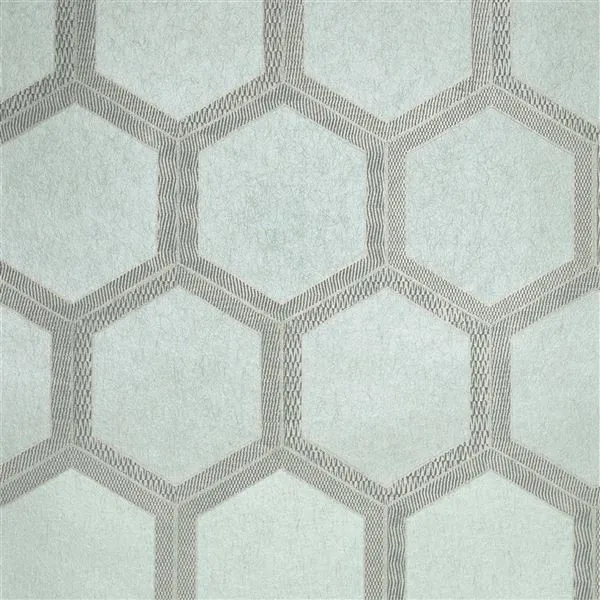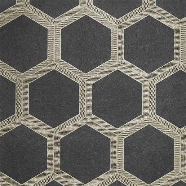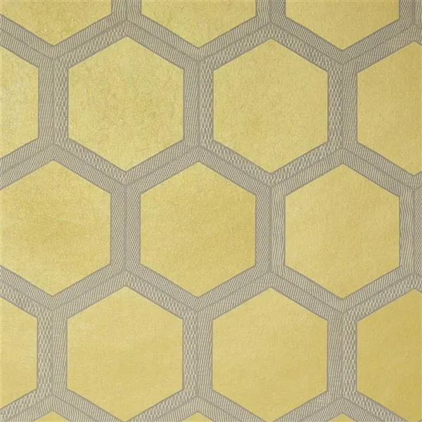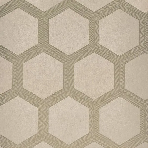 Designers Guild graafinen tapetti Zardozi on isokuvioinen. Kuusikulmainen kuvio on koristeltu ''metallisilla'' yksityiskohdilla ja se tuo kivaa eläkyyttä tapettiin.